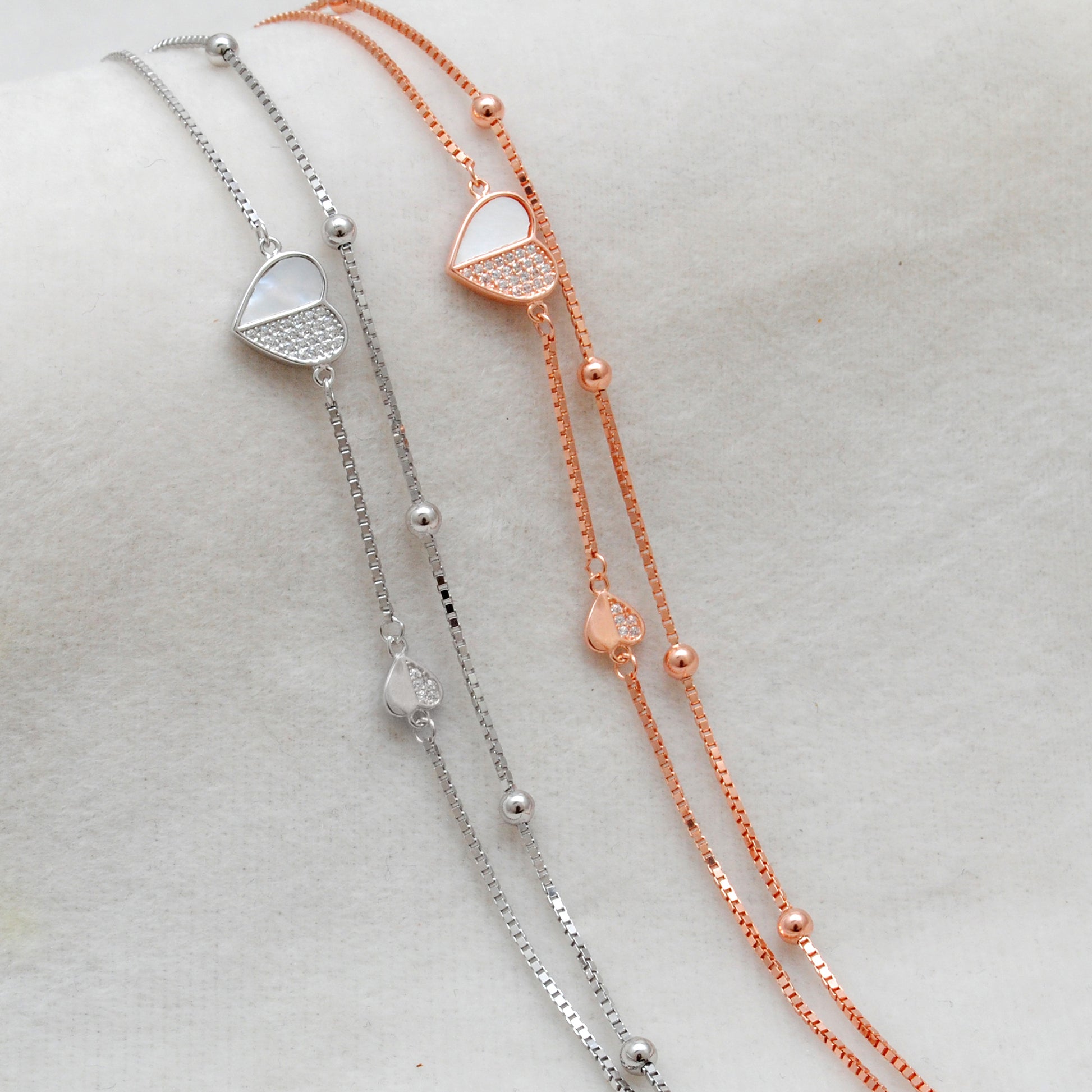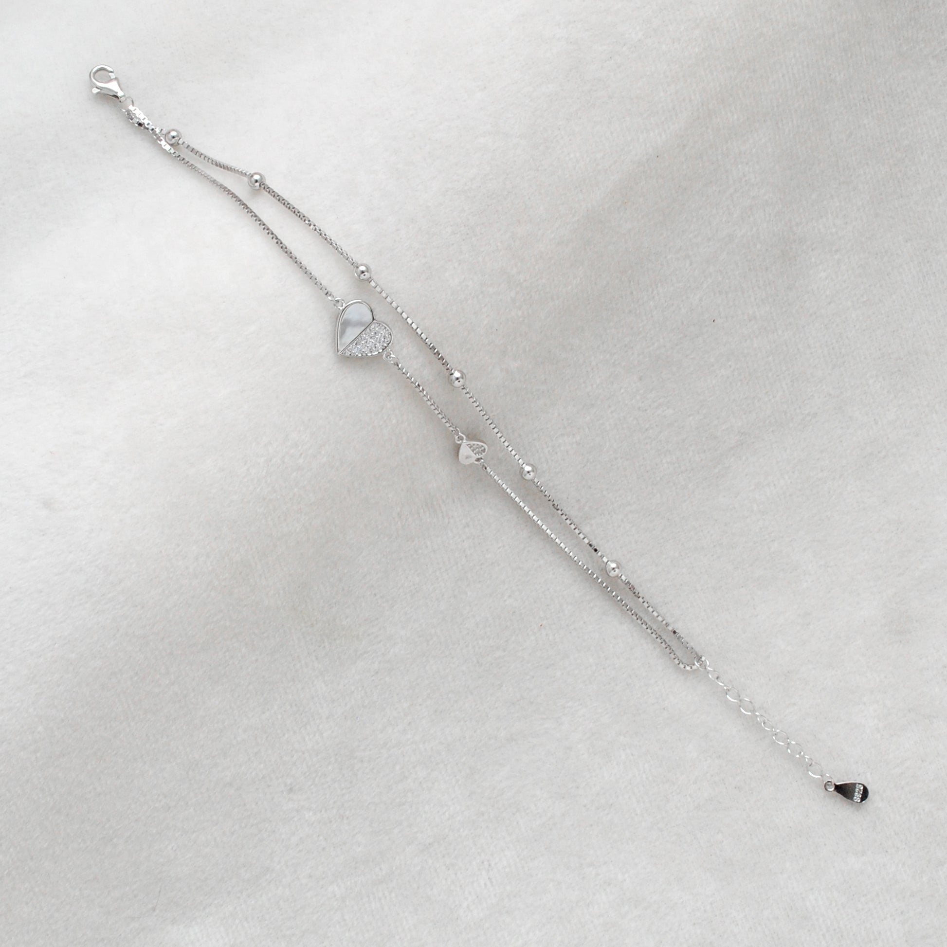 Dainty 8-inch 925 Sterling Silver Heart Bracelet with & CZ | Perfect Birthday Gift