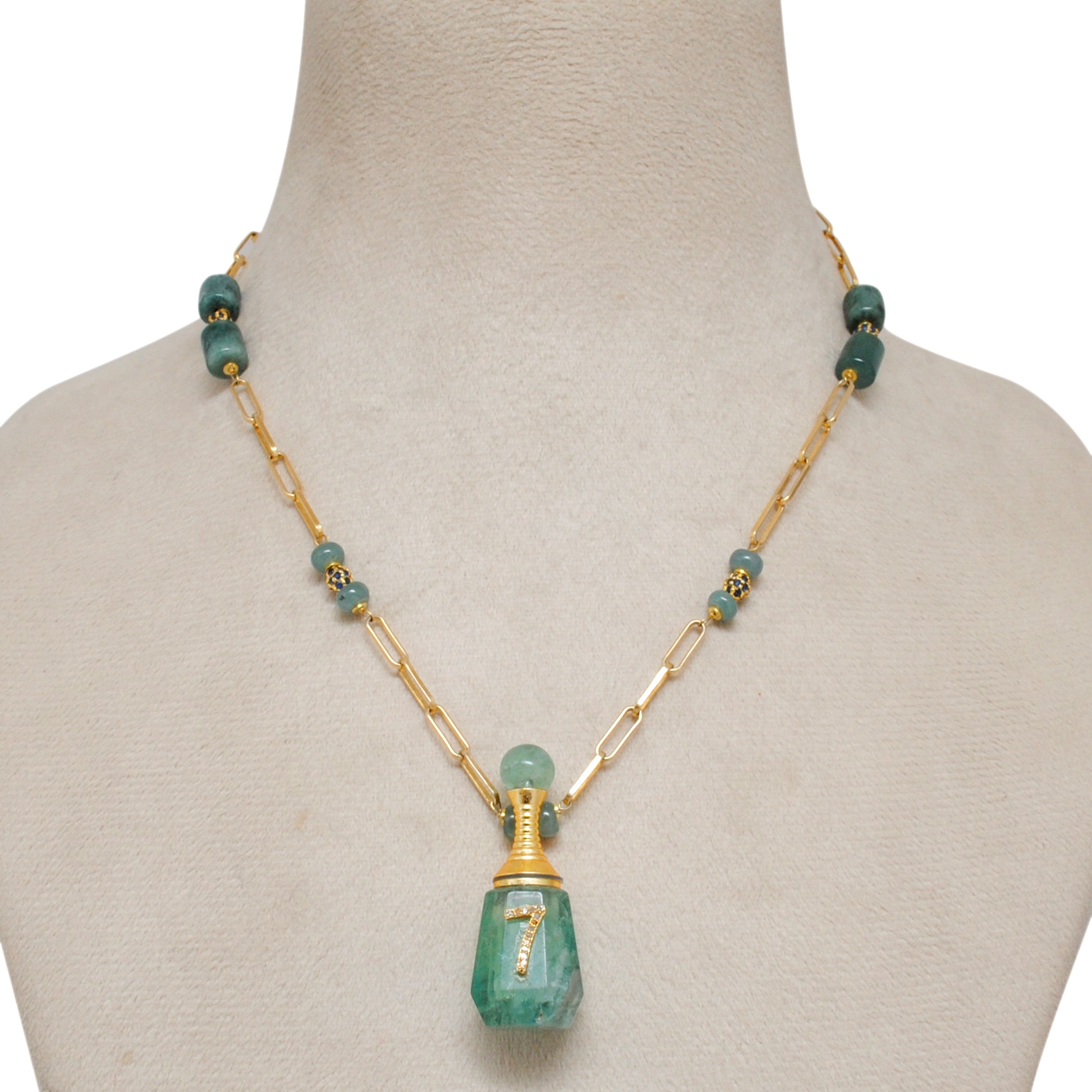 925 Sterling Silver Green Jade & Diamond Fancy Minimalist Necklace