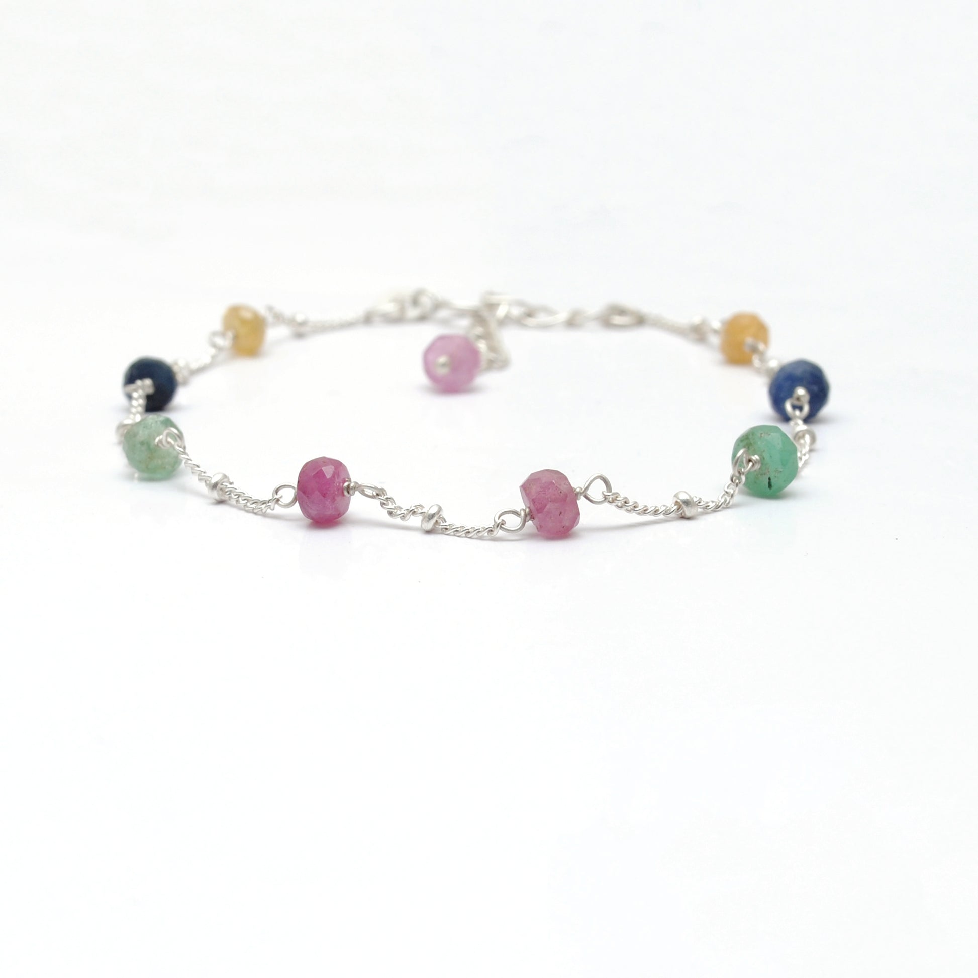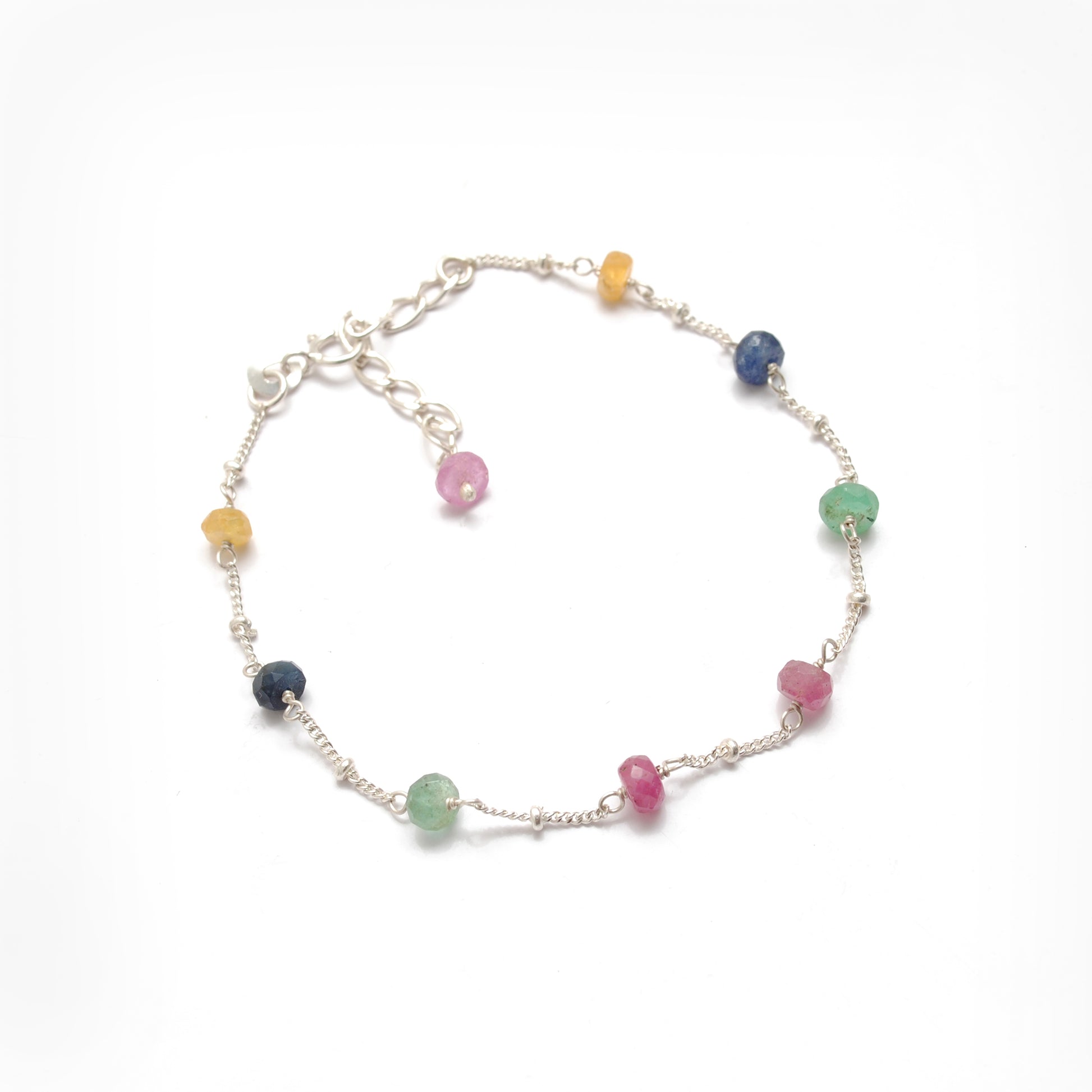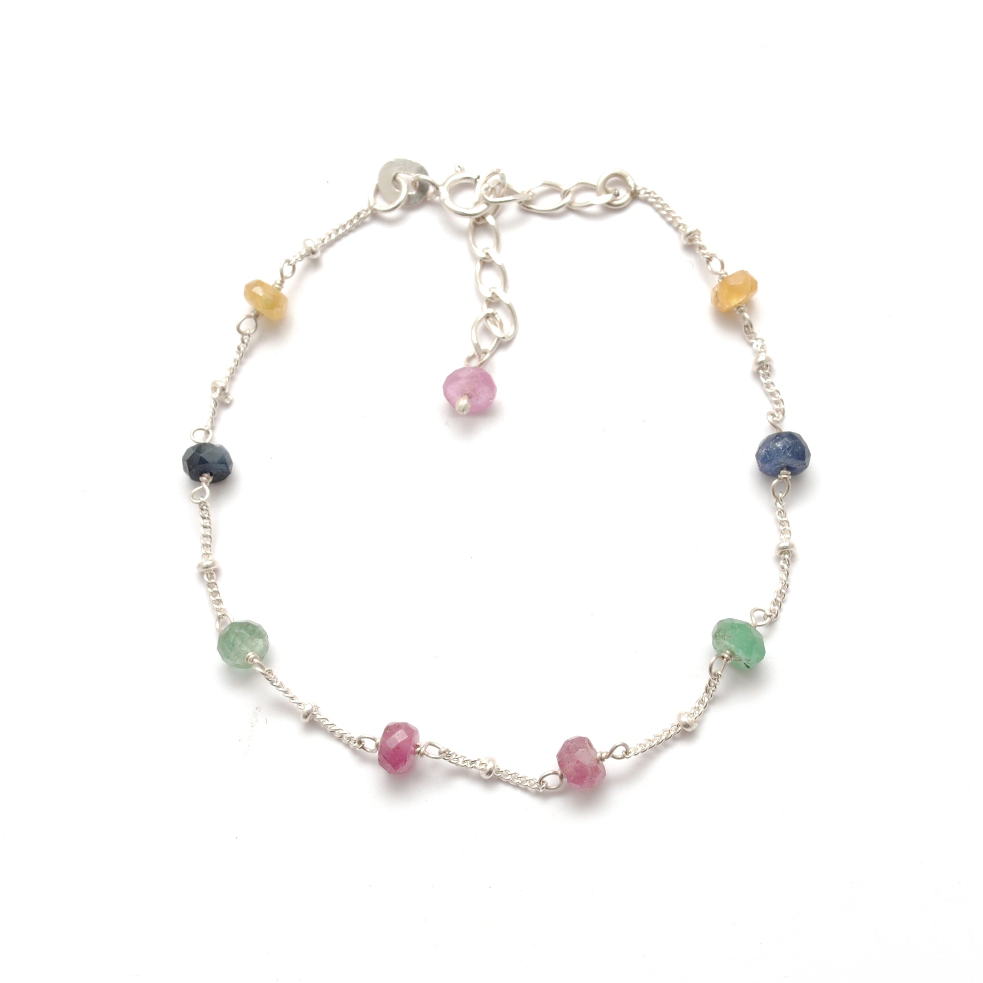 Multi Sapphire Faceted Beads Silver Bracelet
