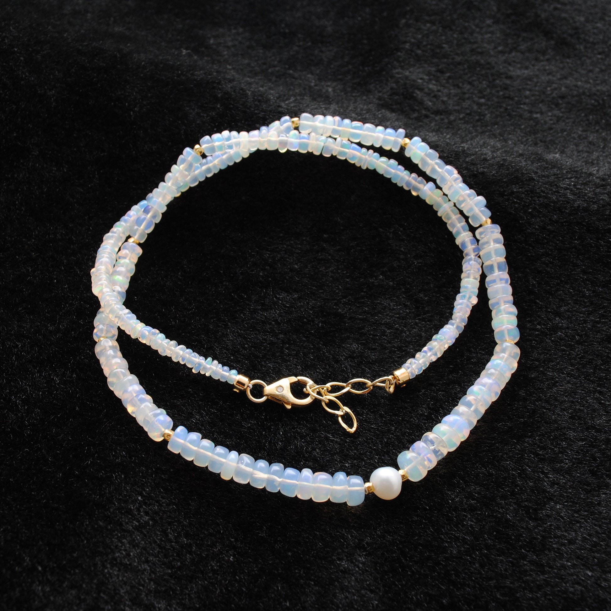 Enhance your elegance with this 925 Sterling Silver Gold-Plated Ethiopian Opal & Freshwater Pearl Beaded Necklace, handcrafted with natural gemstones. Its timeless design makes it perfect for birthdays, anniversaries, weddings, or as a thoughtful gift for women.