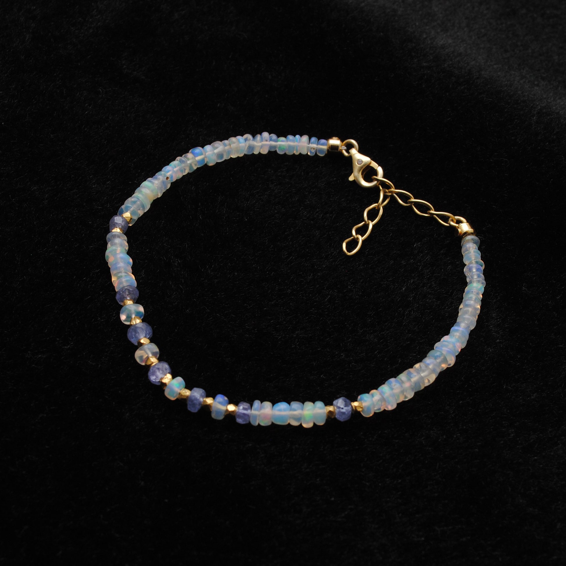 925 Silver Opal & Tanzanite Beaded Bracelet – Minimalist Gemstone Jewelry Gift