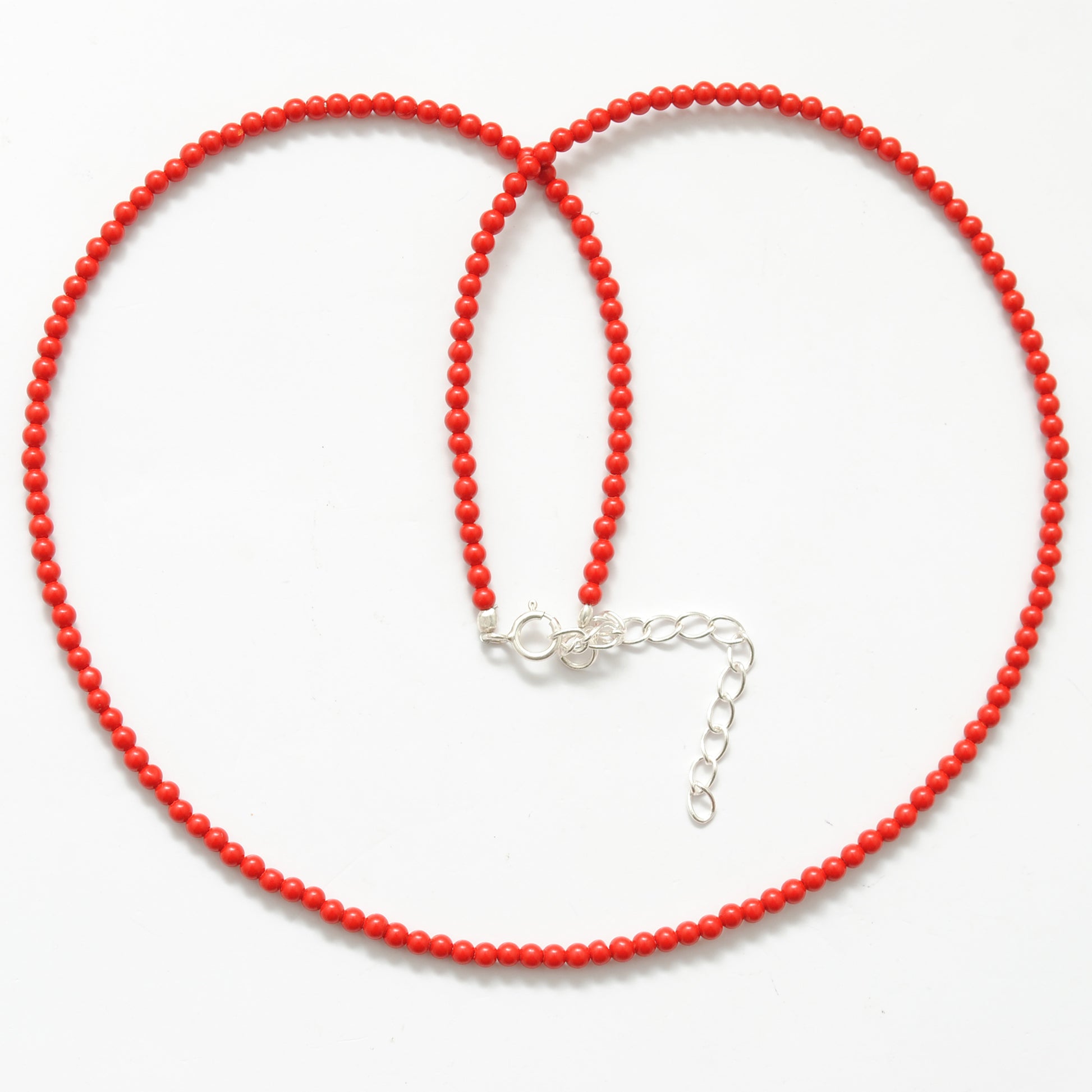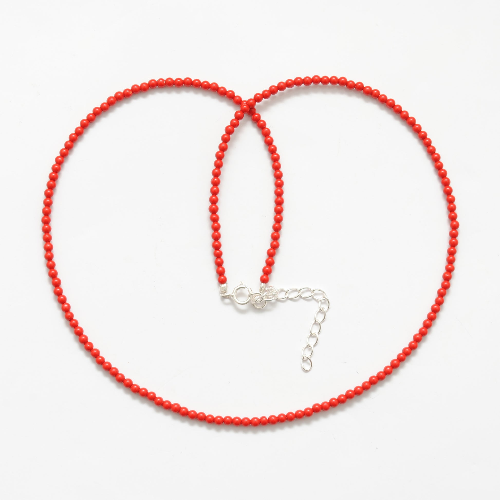 925 Sterling Silver Red Coral Beaded Necklace With Extension