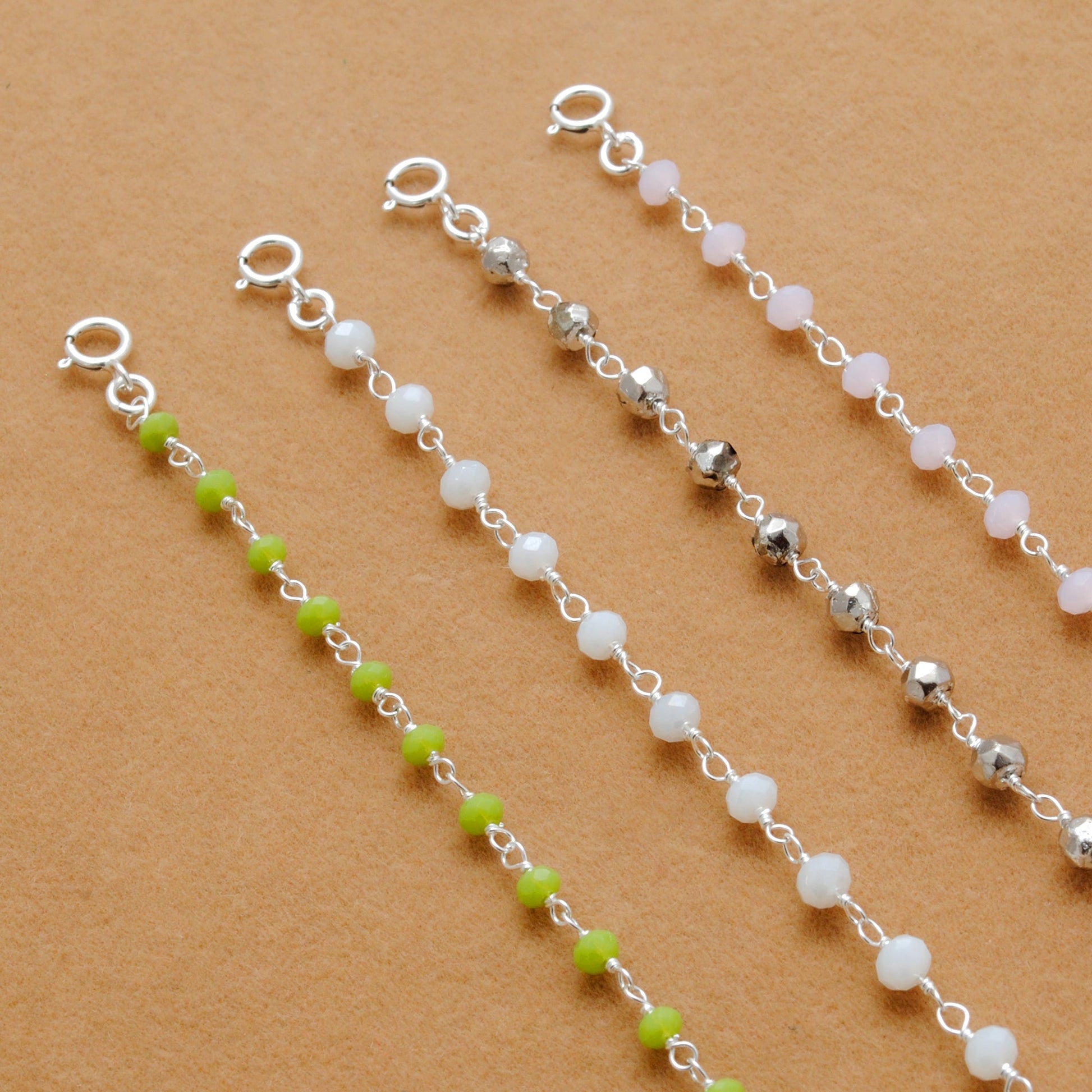 • Gemstones: Rose Chalcedony, White Chalcedony, Green Chalcedony, Pyrite