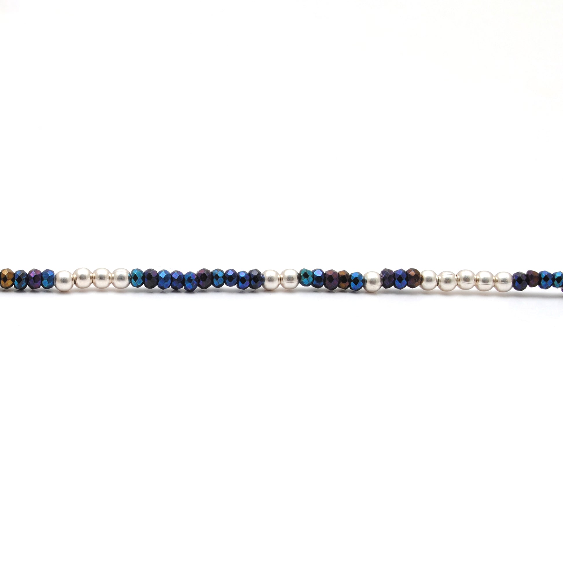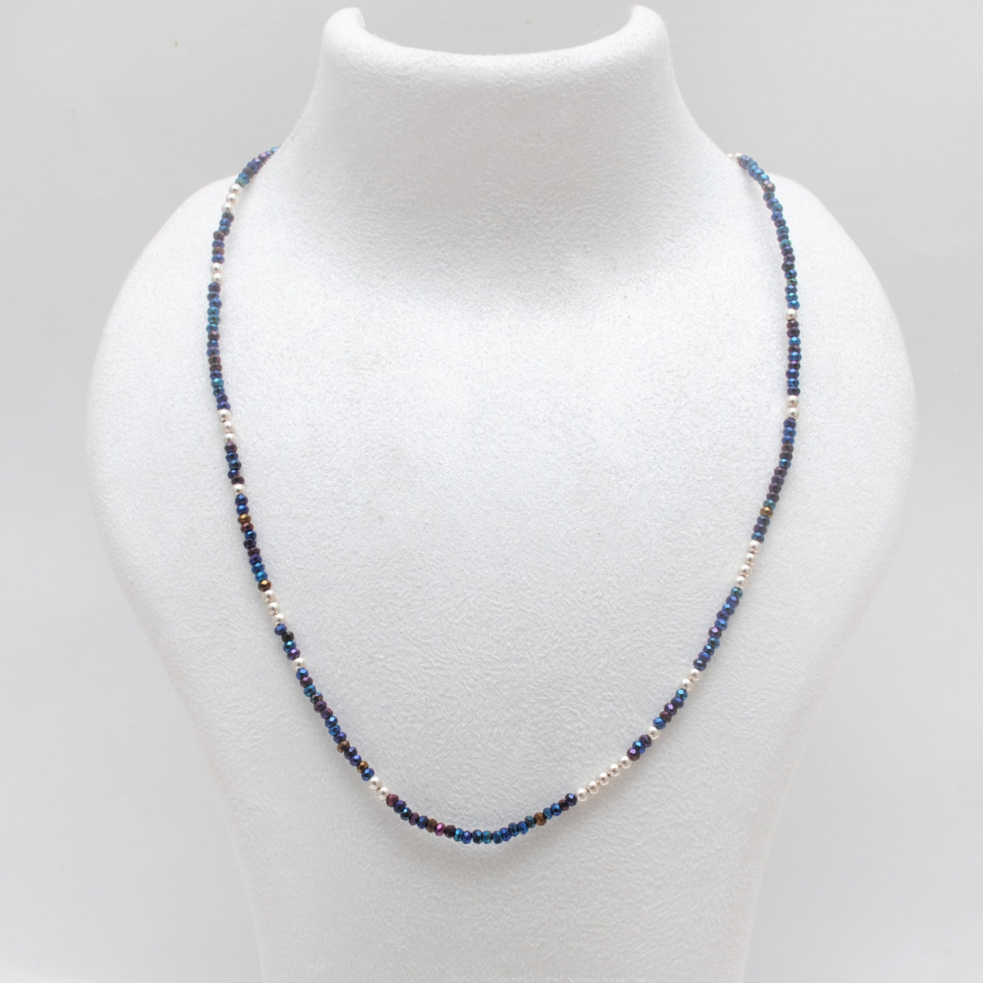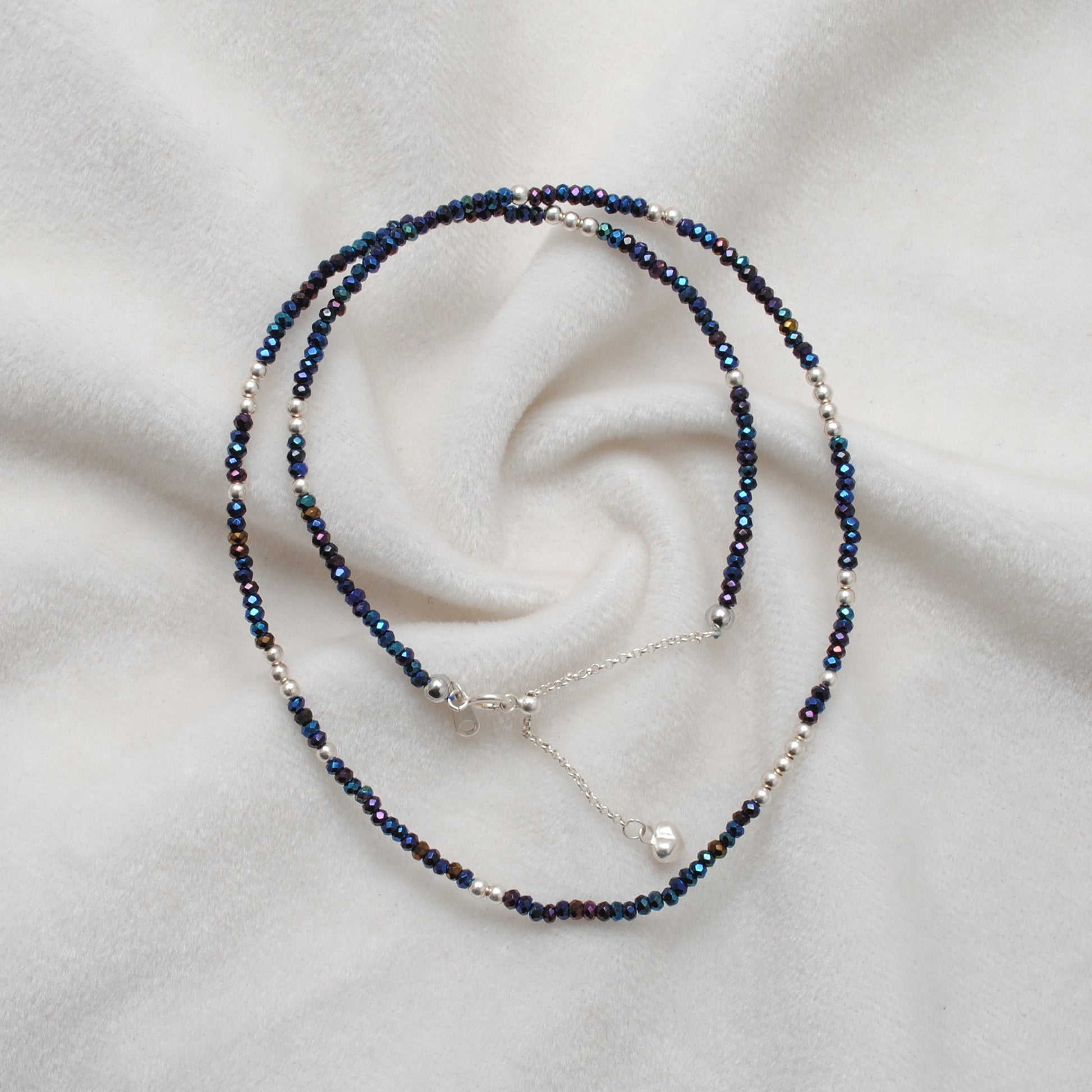 Black Spinel Blue Mystic Coated Beads Silver Necklace