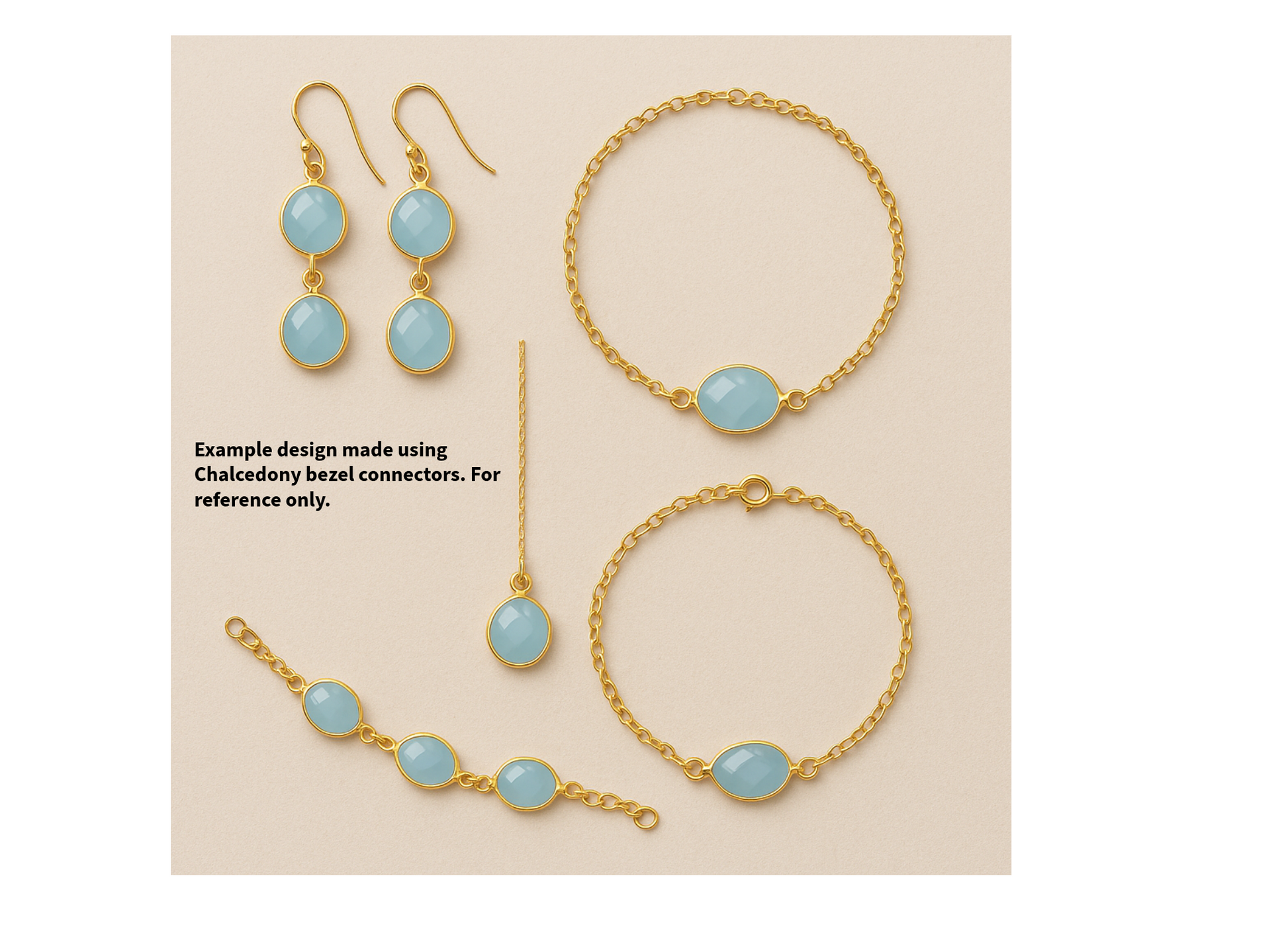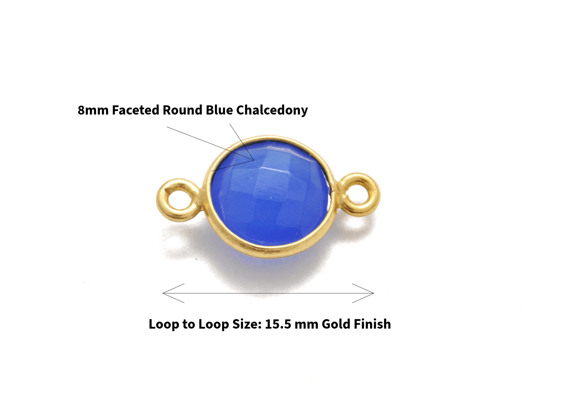 Blue Chalcedony Round Gold Plated Closed Double Bail Bezel Connector