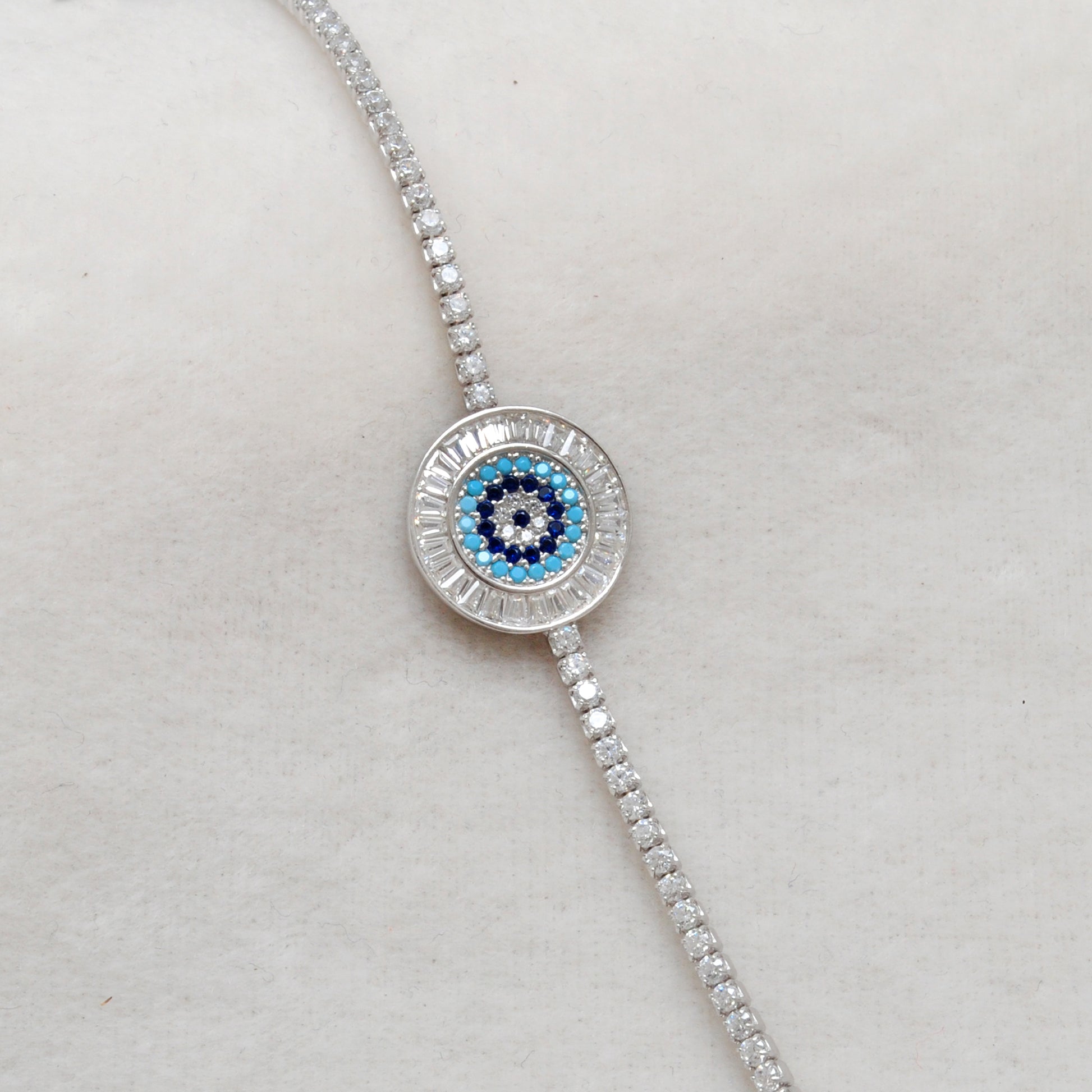 Colorful CZ Evil Eye Bracelet – 925 Silver Protection Jewelry, Gift for Her
