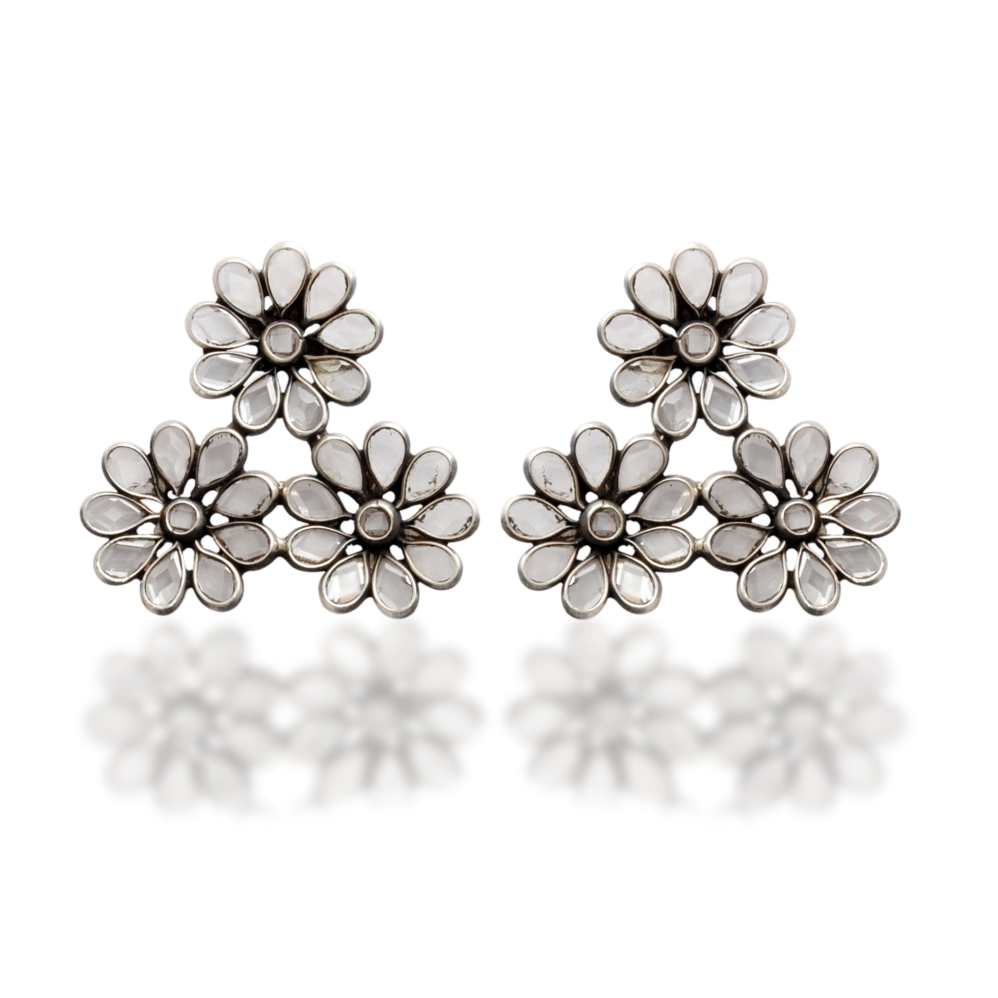 Cubic Zirconia Flower Dangle Earrings – 925 Silver Jewelry, Unique Gift for Women