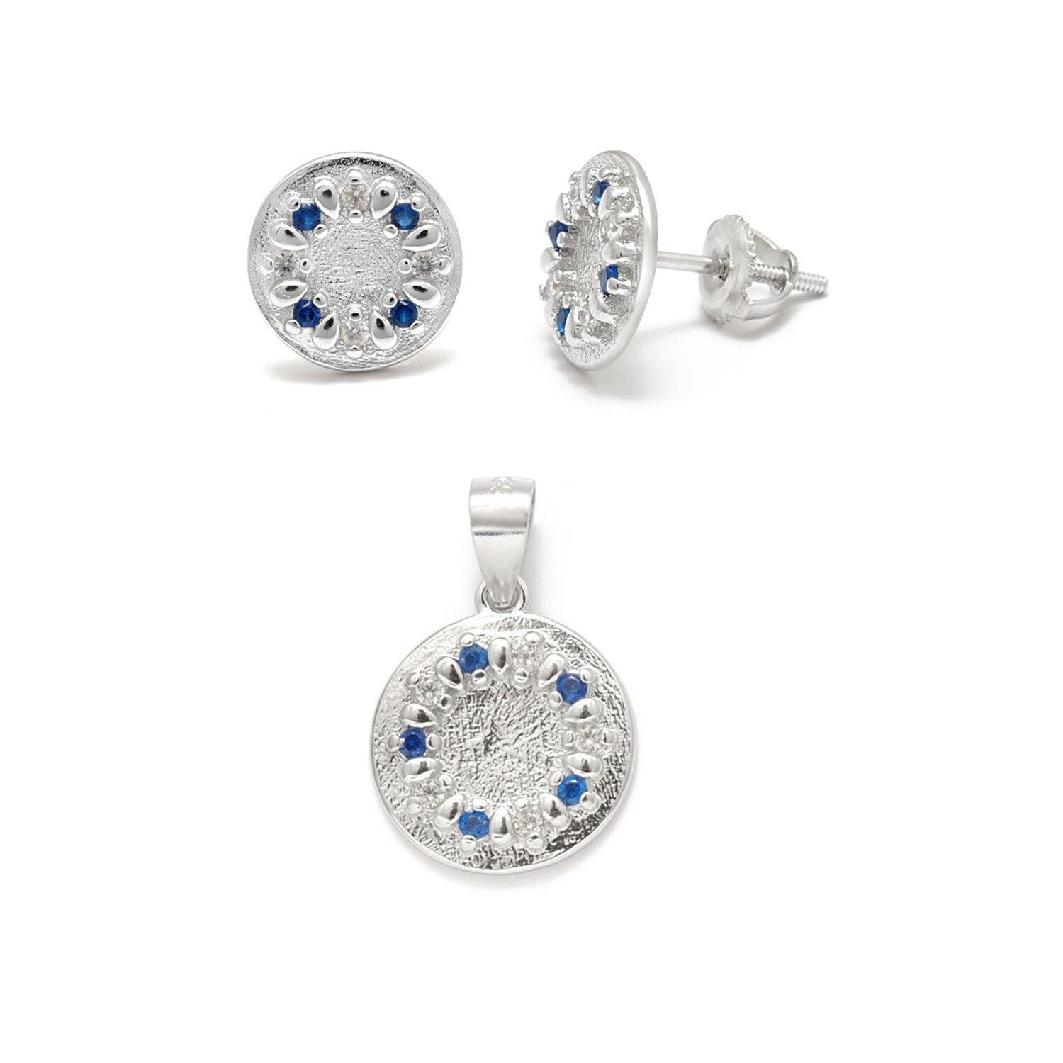 Cubic Zirconia Silver Jewelry Set. Featuring a mesmerizing blue stone pendant and matching stud earrings, this sterling silver set is designed to add a touch of sparkle to any ensemble. Ideal for gifting or personal use, this jewelry set combines high-quality craftsmanship with timeless beauty.