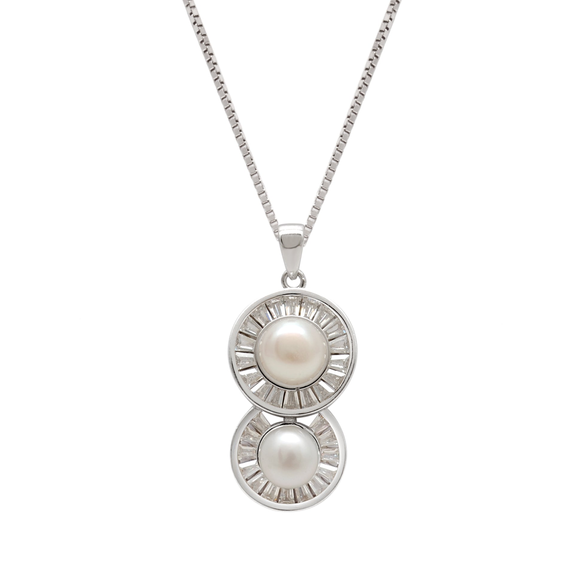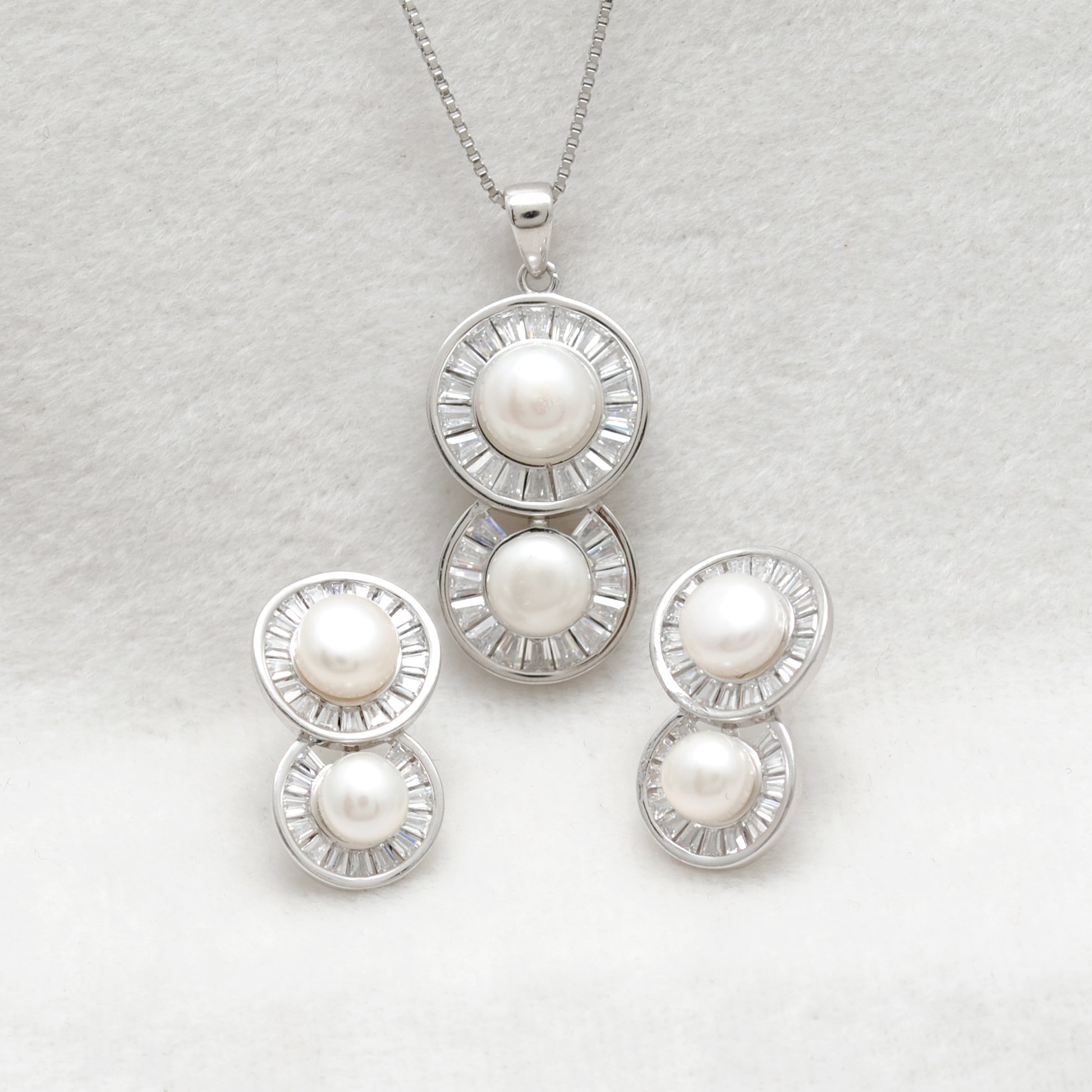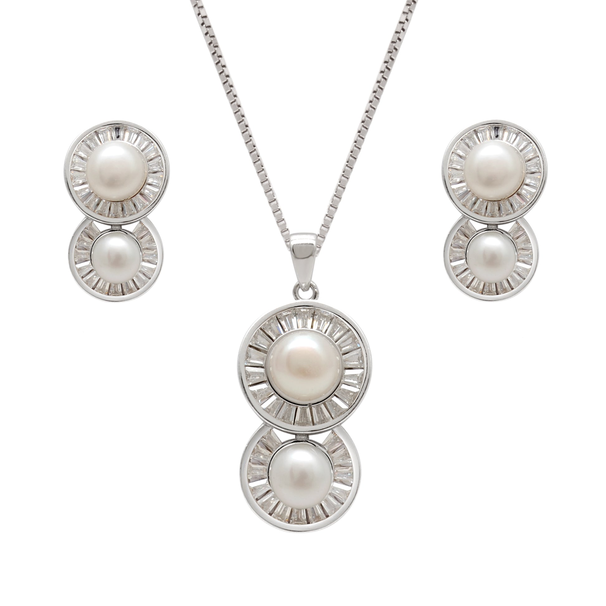 CZ & Pearl Necklace Earrings Set – 925 Sterling Silver, 20 Inch