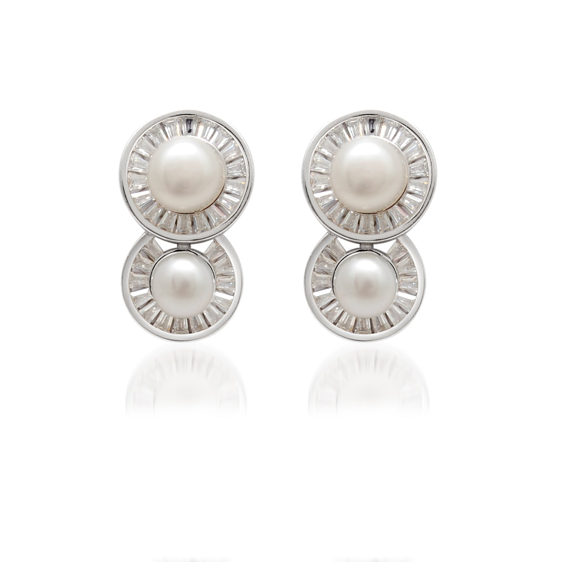 Elegant and timeless, this CZ & Pearl necklace earrings set is crafted in pure 925 sterling silver. Featuring a refined blend of sparkling cubic zirconia and luminous pearls, it offers a graceful 20-inch fall – ideal for formal occasions, gifting, or effortless everyday elegance.