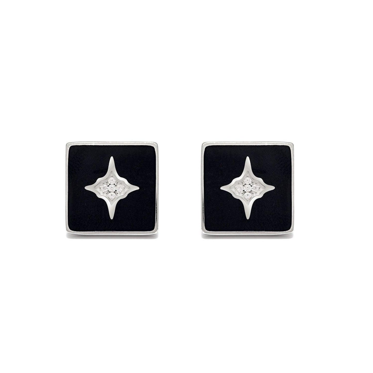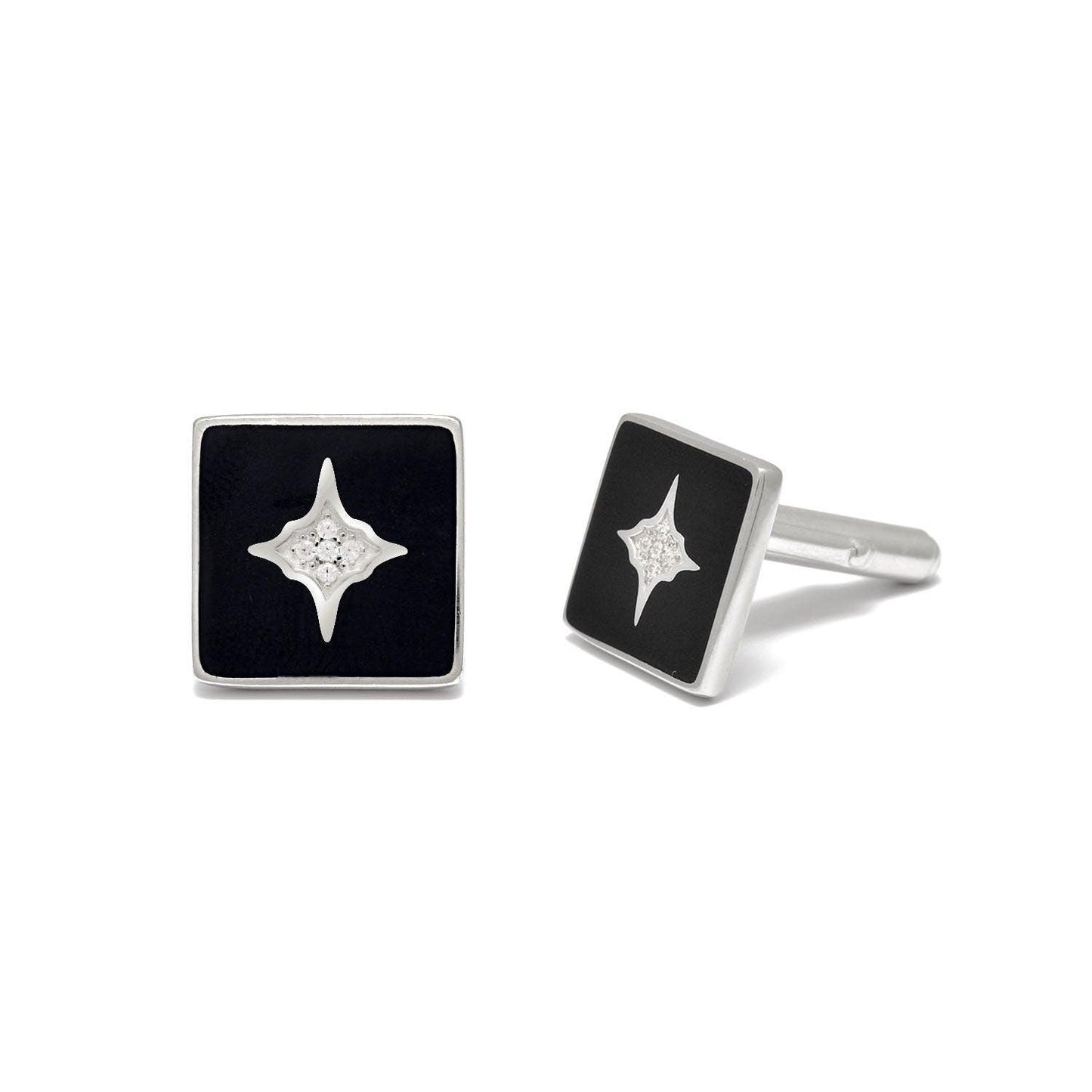 925 Sterling Silver Cubic Zirconia Starburst Black Cufflinks Jewelry