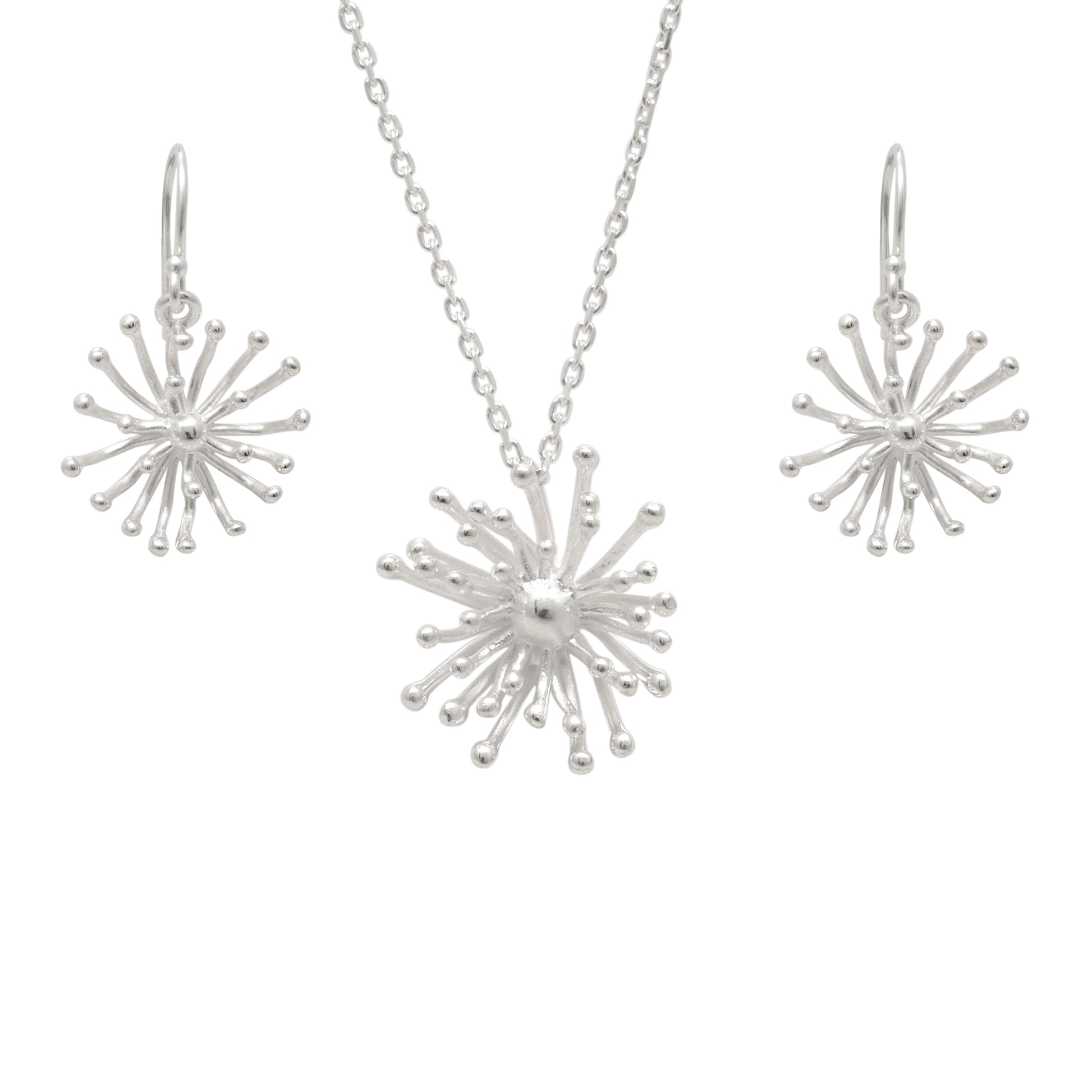 Dandelion CZ Necklace Earrings Set – 925 Sterling Silver, 19 Inch