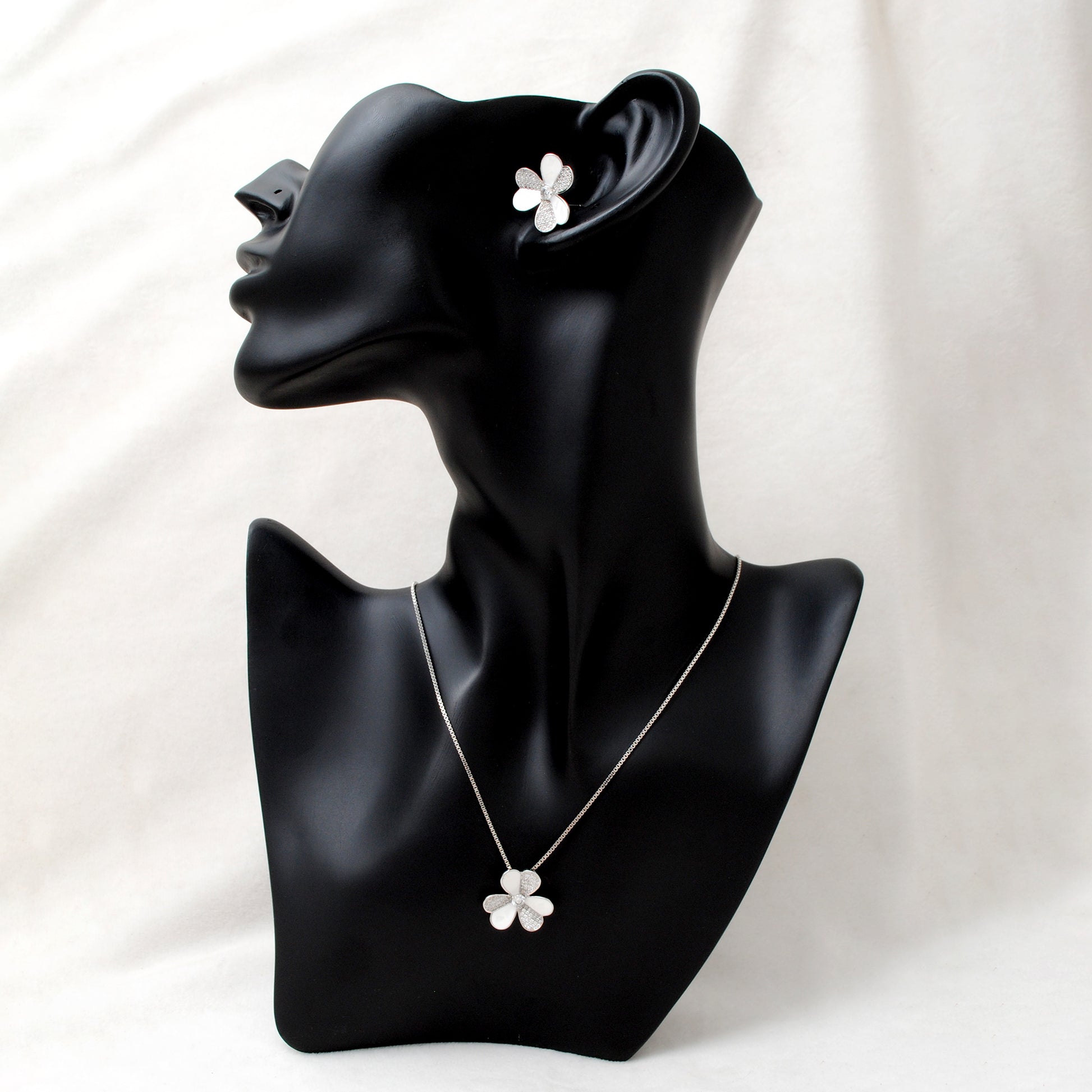 Floral CZ Necklace & Earrings Set – 925 Silver & Gold Plated