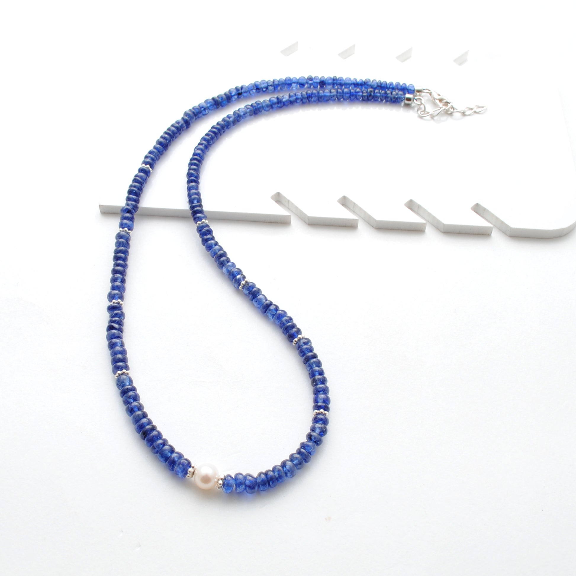 Crafted with genuine blue sapphire 5mm beads and a pearl necklace, this elegant piece is perfect for adding a touch of sophistication to any outfit. The natural sapphires add a luxurious sparkle, while the pearls bring a classic touch. Elevate your look with this stunning, high-quality necklace.