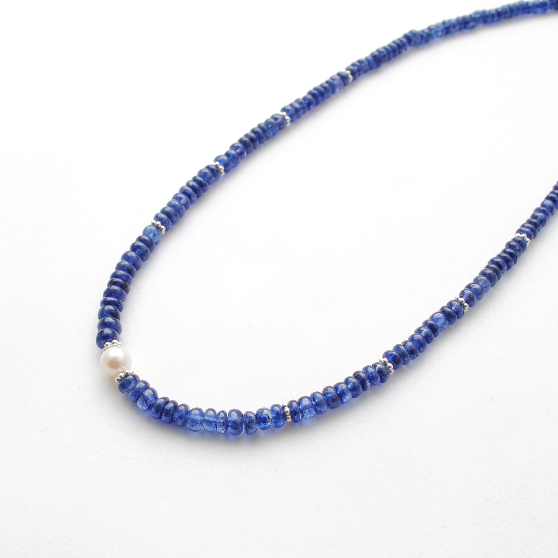 Genuine Blue Sapphire 5mm Beads With Pearl Necklace