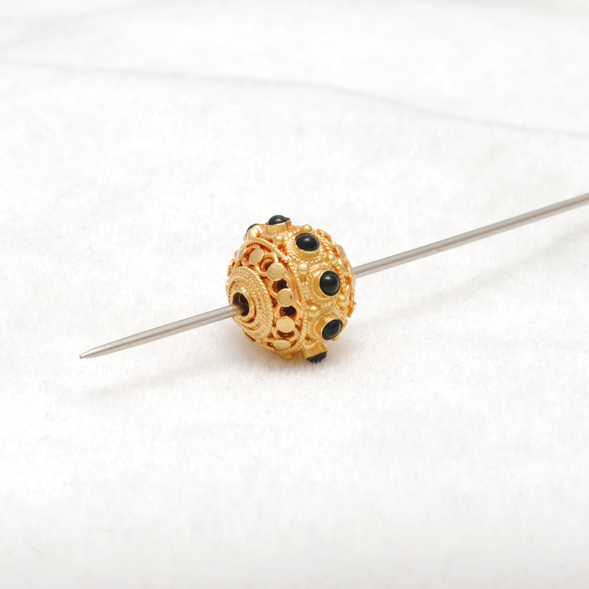 Crafted with 18K gold, this 13x11mm emerald round bead spacer adds elegance and versatility to any jewelry design. Elevate your creations with this luxurious bead.