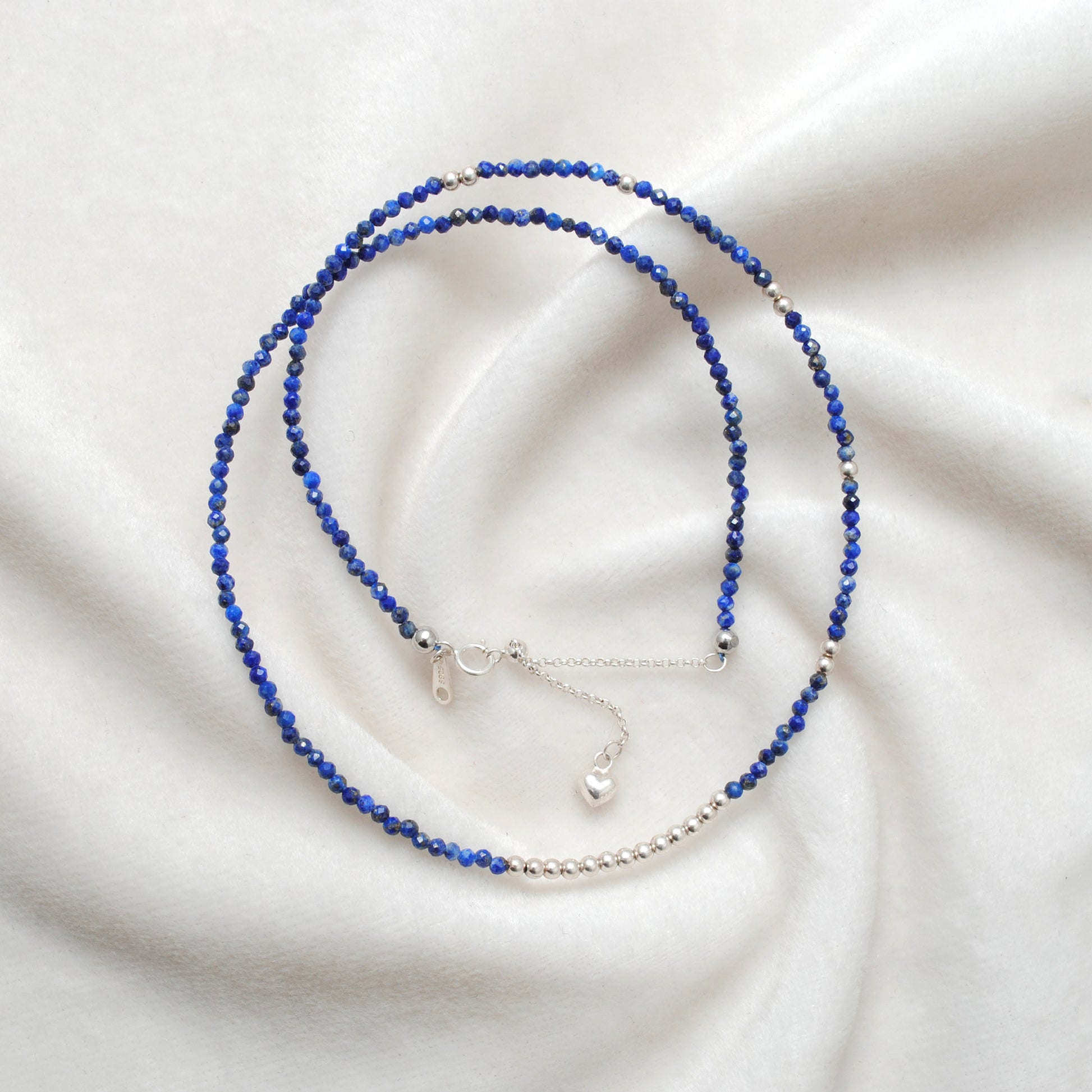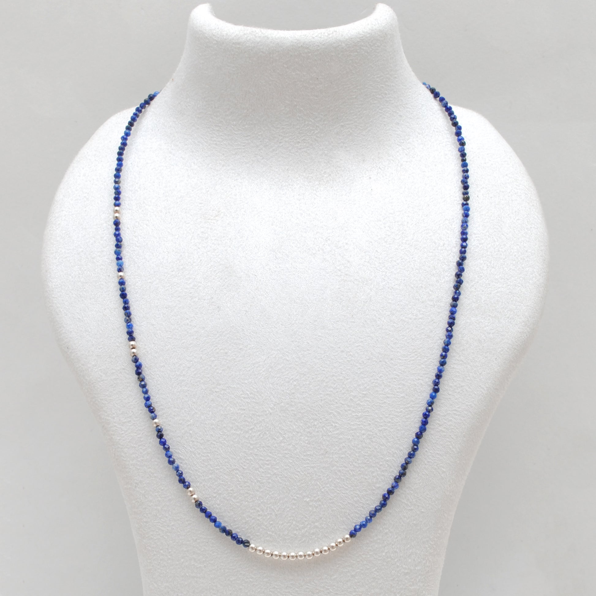 Elevate your style with this 925 Sterling Silver Natural Lapis Lazuli Rondelle Beaded Necklace, handcrafted with faceted lapis lazuli beads and smooth silver ball beads. Its timeless elegance makes it perfect for birthdays, anniversaries, or as a thoughtful gift for women.