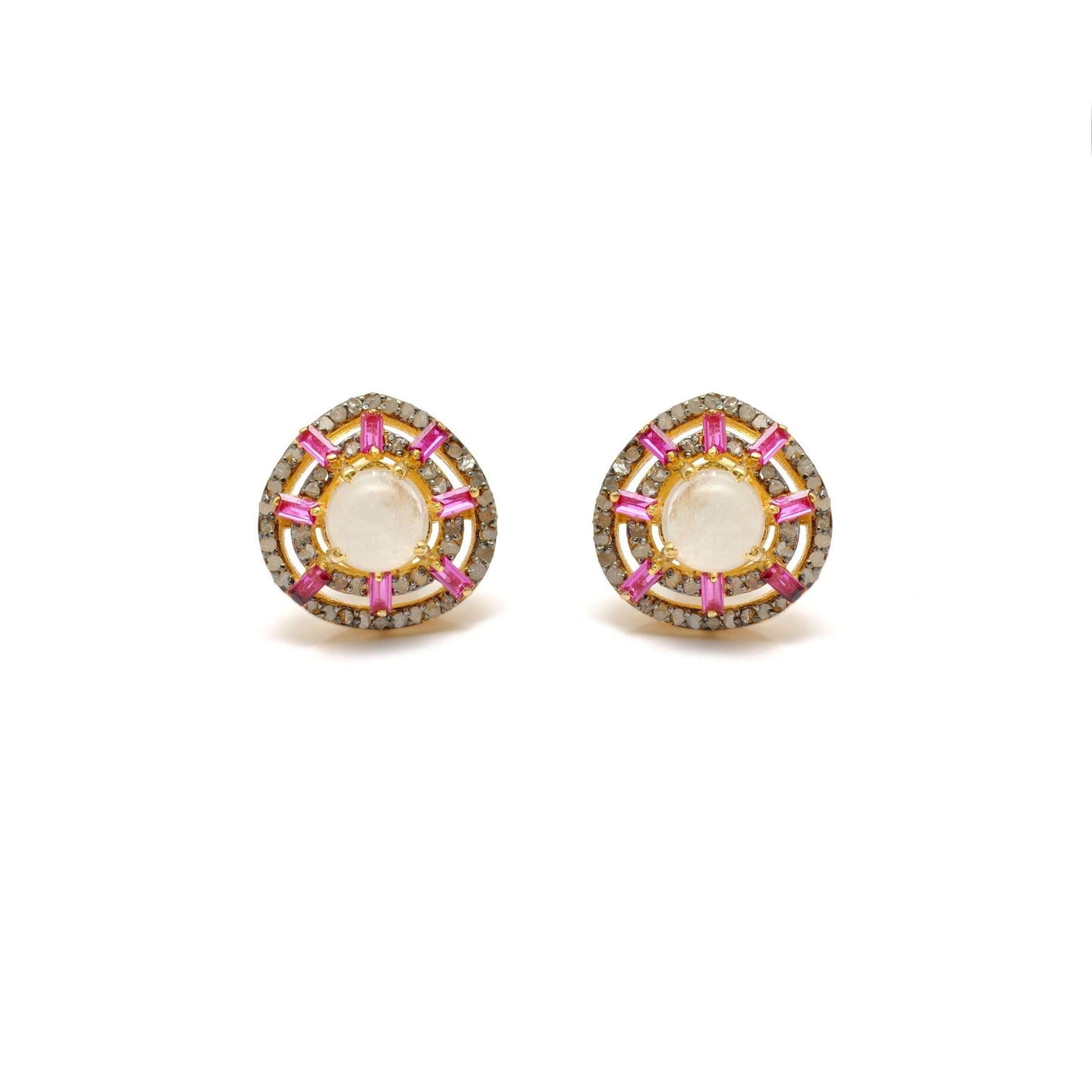 Elevate your jewelry collection with our exquisite Victorian Moonstone Stud Diamond Ruby Jewelry. Crafted with stunning moonstone, sparkling diamonds, and vibrant ruby gemstones, this piece exudes elegance and sophistication. Perfect for any occasion, this jewelry is a statement of timeless beauty.