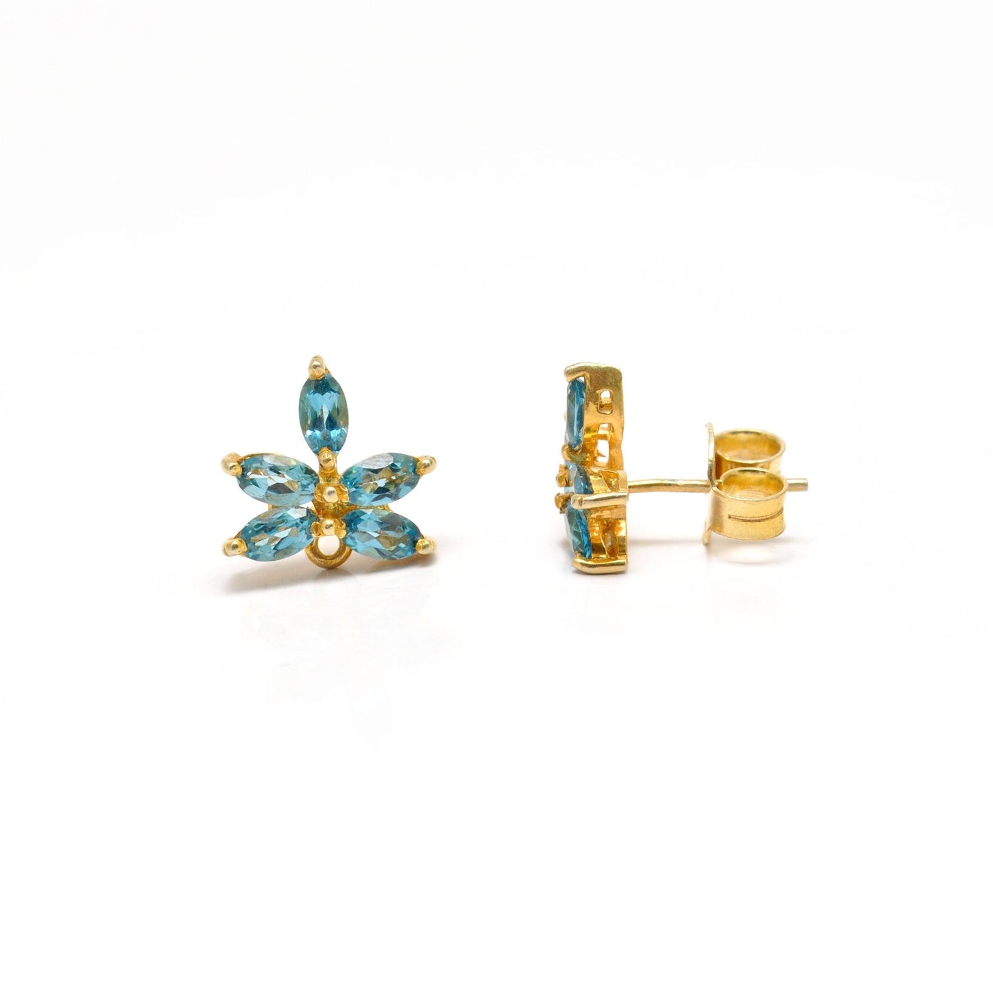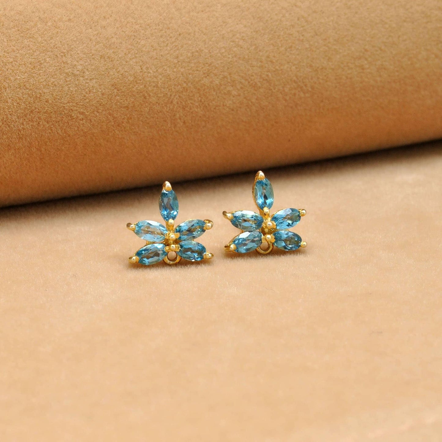 Natural Blue Topaz Stud Earring Silver Jewelry