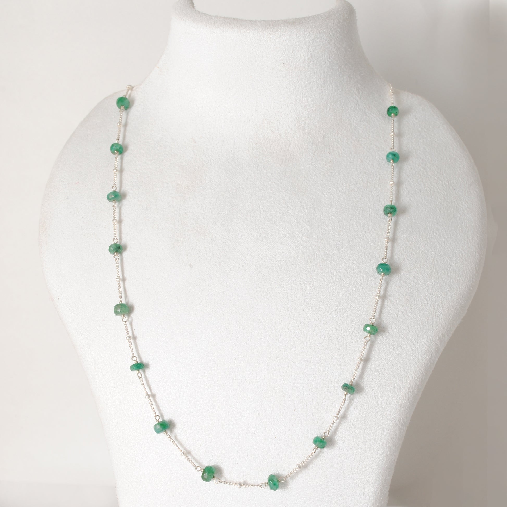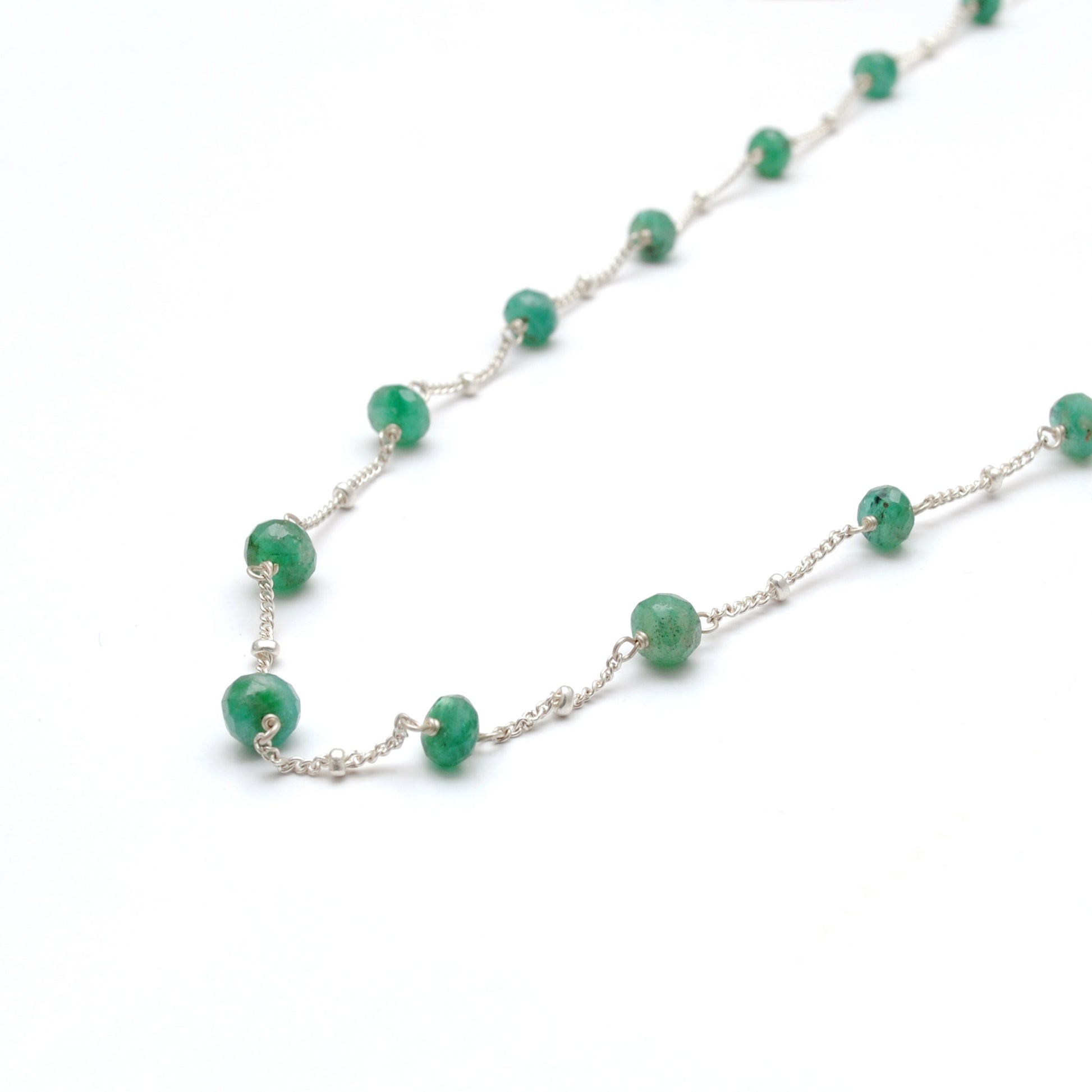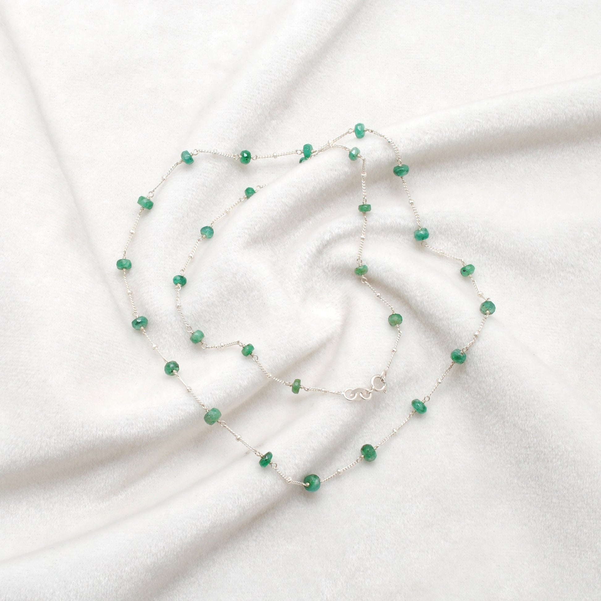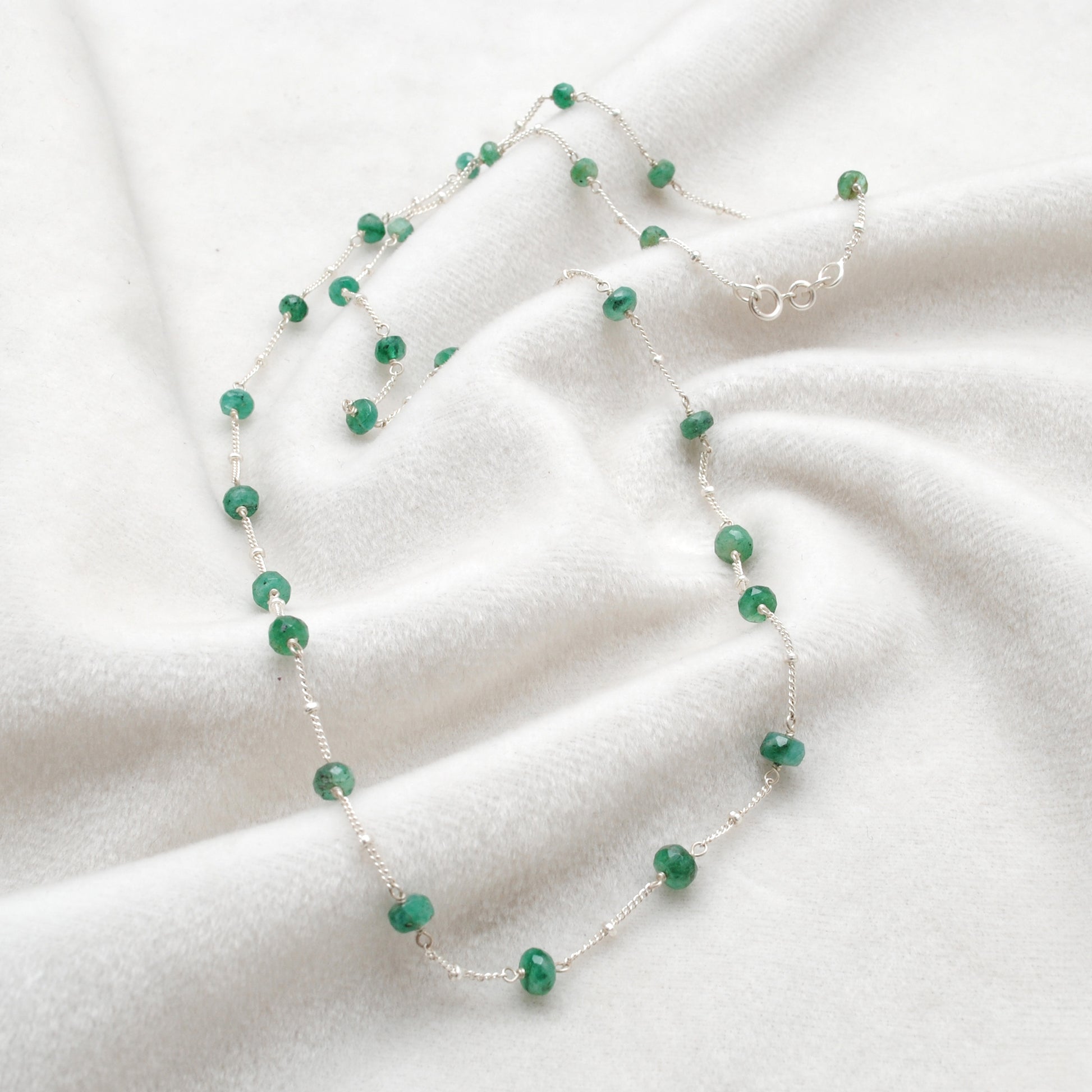 Natural Emerald Tiny Beaded Choker Chain Necklace