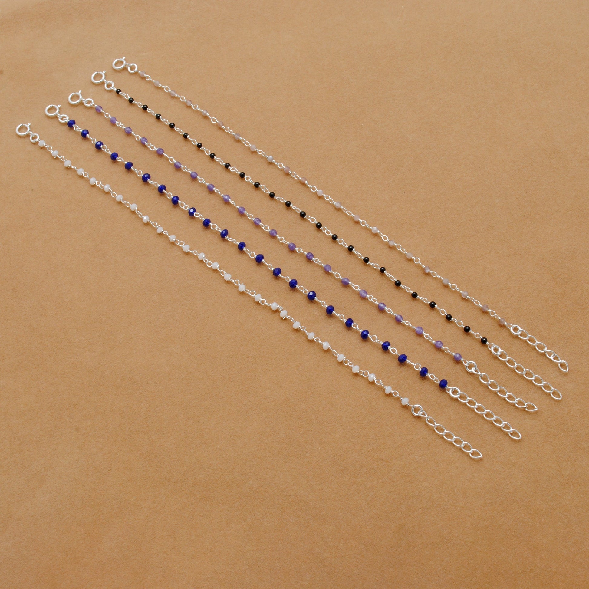 Multi-Stone Sterling Silver Bracelet with Amethyst, Moonstone & More - Kanika Creations