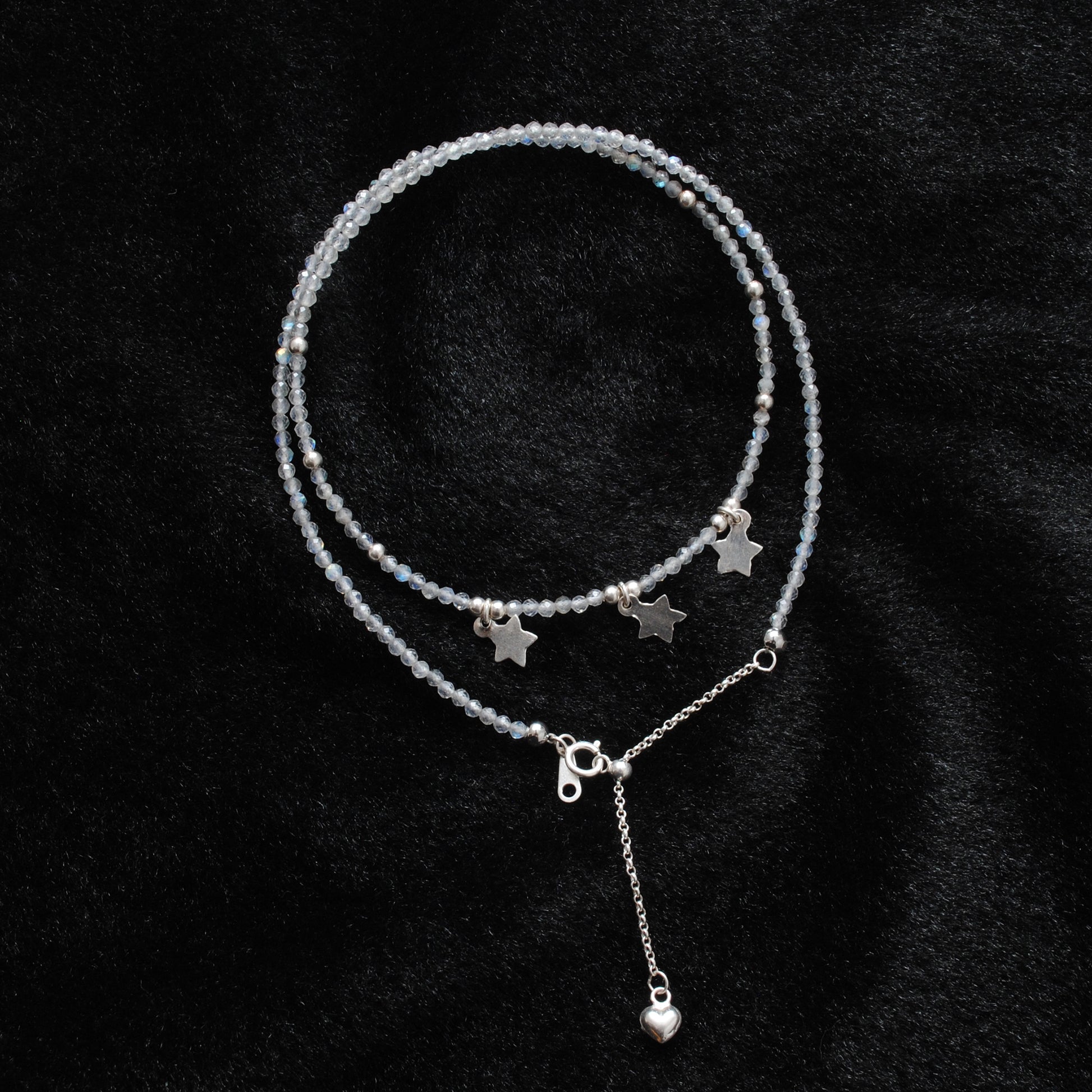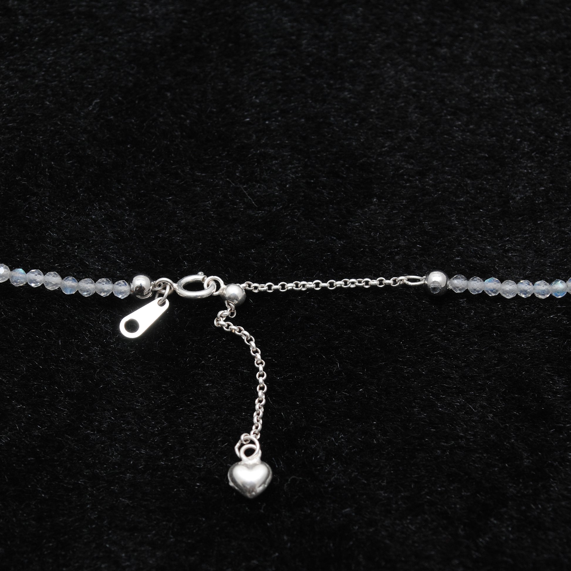 This Labradorite Beaded Sterling Silver Charm Necklace showcases delicate beauty with a touch of elegance. The unique labradorite beads, known for their healing properties, are perfectly complemented by the polished sterling silver charm. Elevate your style while reaping the benefits of this stunning piece of jewelry.