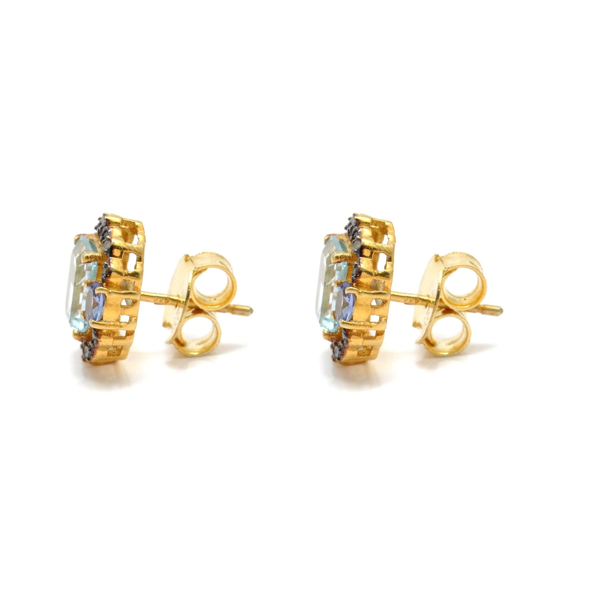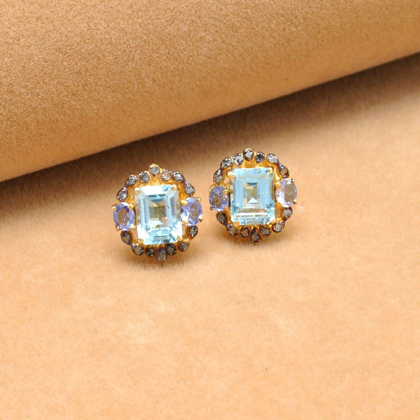 Diamond Blue Topaz Tanzanite Gemstone Stud Earring