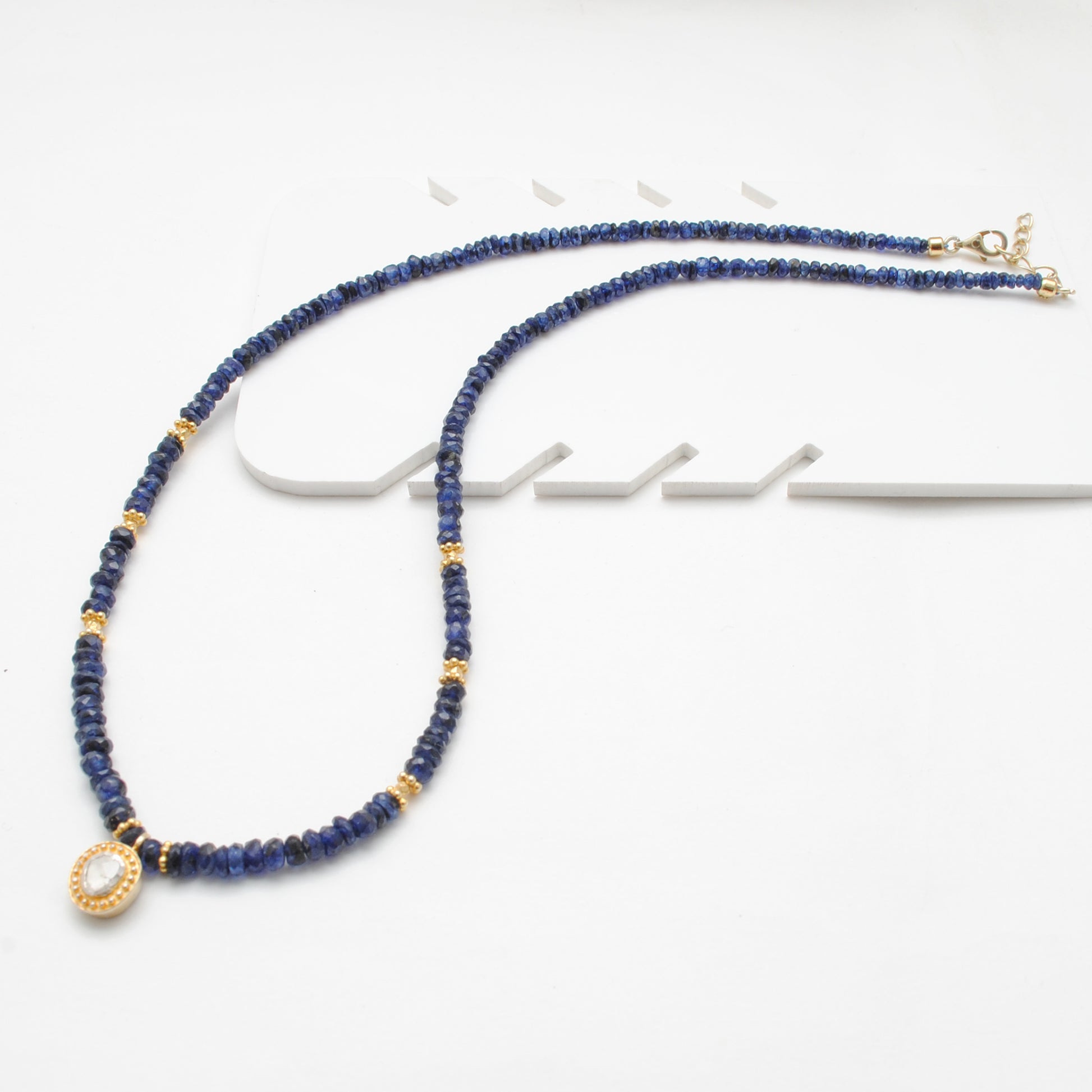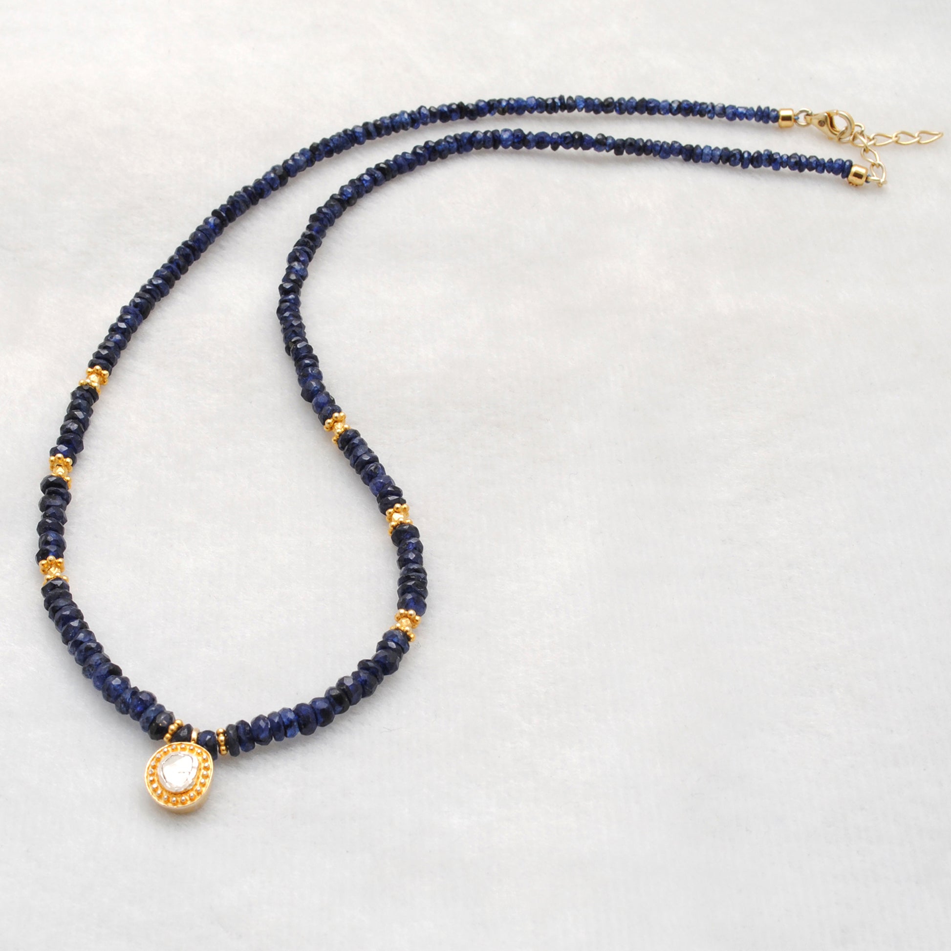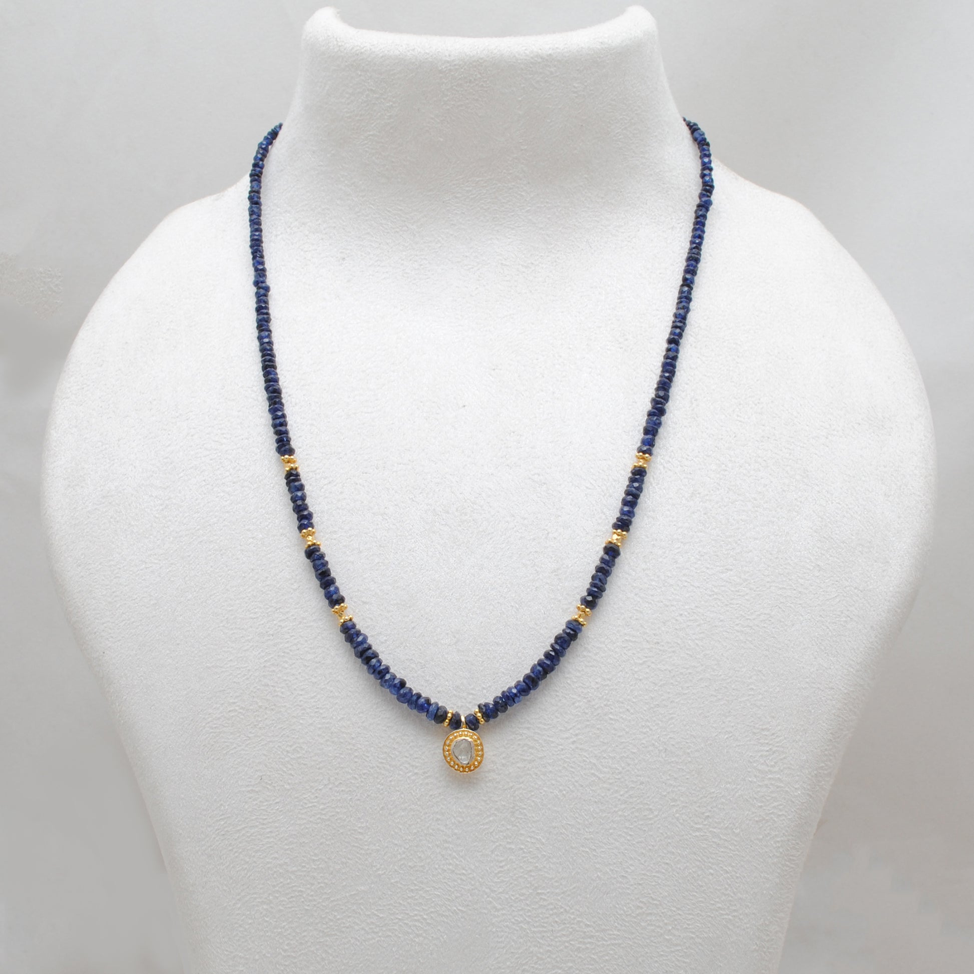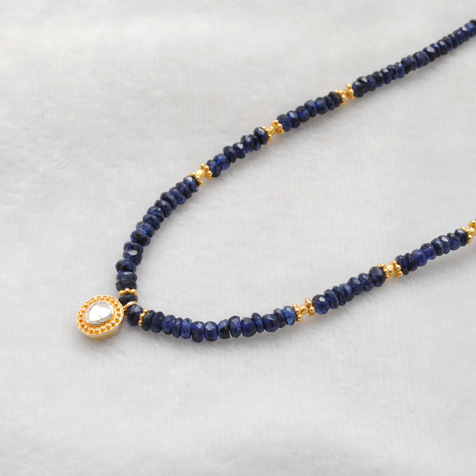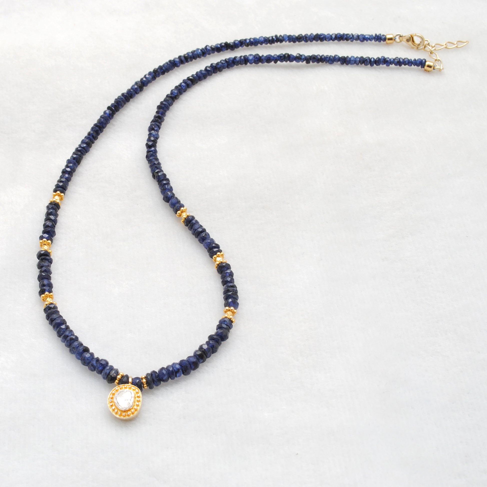 Rose Cut Diamond Necklace Sapphire Beaded Jewelry