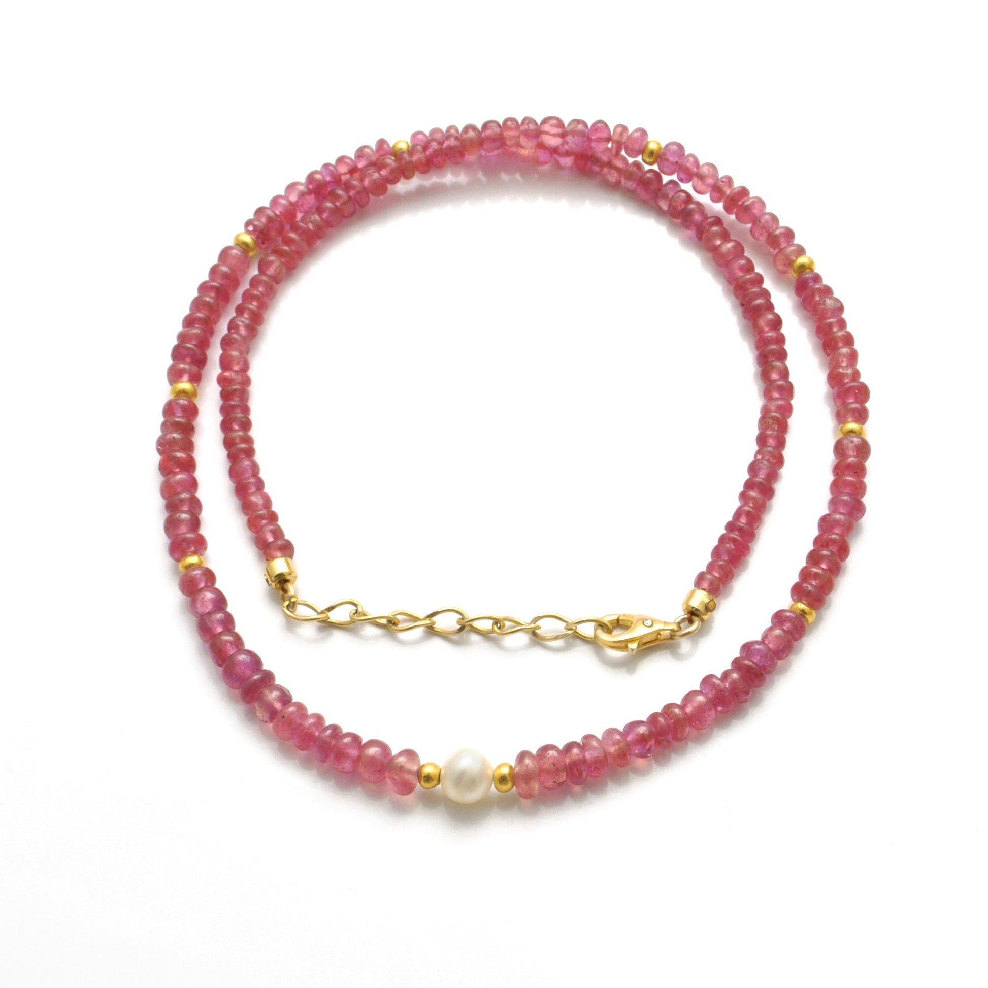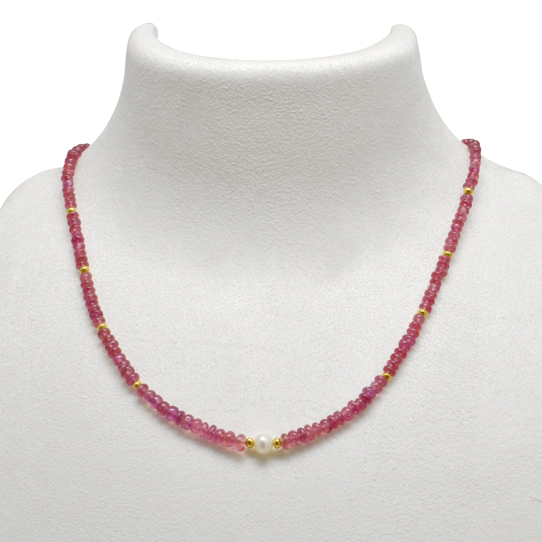 Showcase your sophisticated style with this stunning 18k gold ruby beaded necklace, adorned with lustrous freshwater pearls. Perfect for adding a touch of elegance to any outfit, this necklace is sure to make a statement and become a treasured Christmas gift. Elevate your jewelry collection with this timeless piece.
