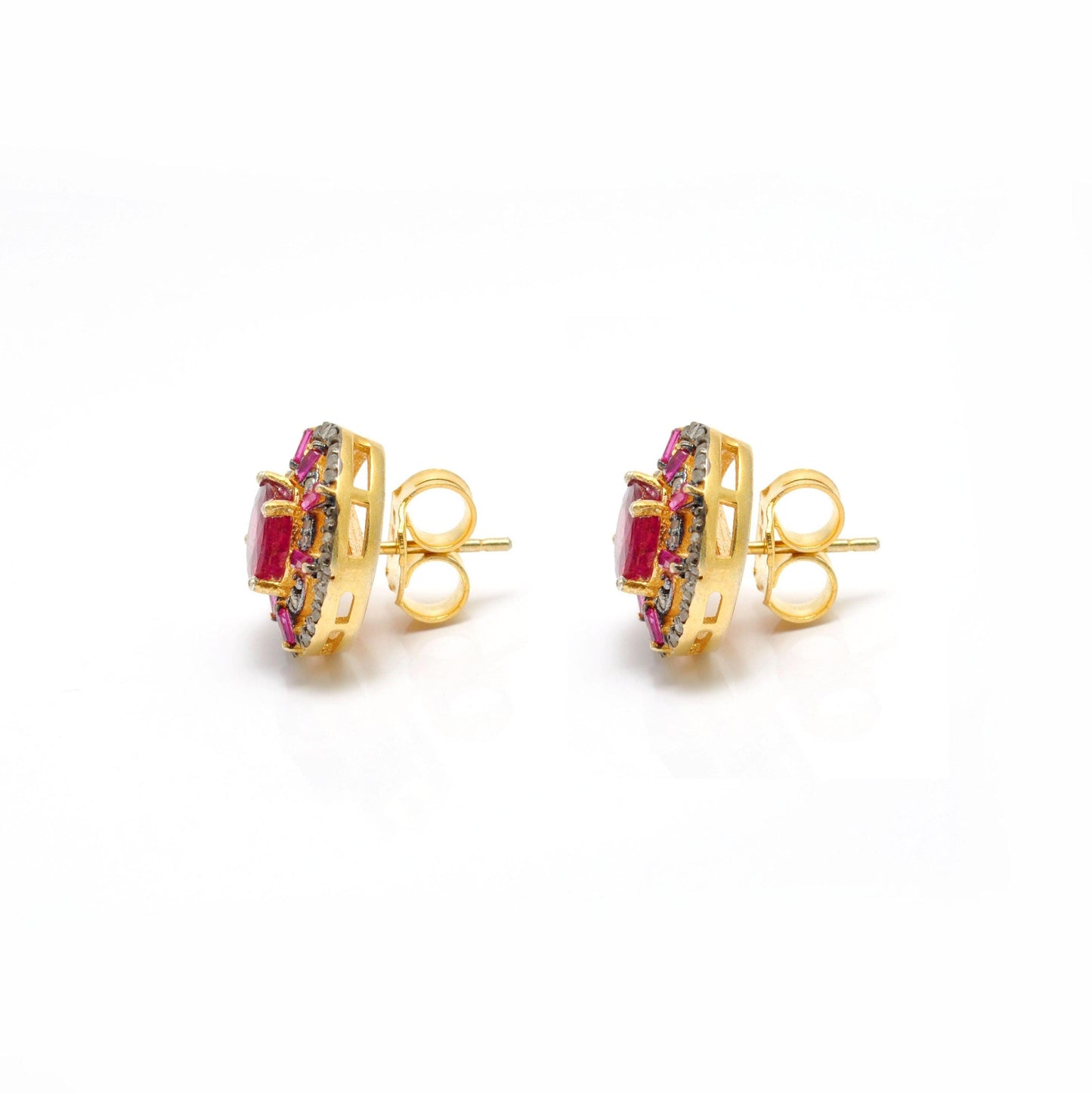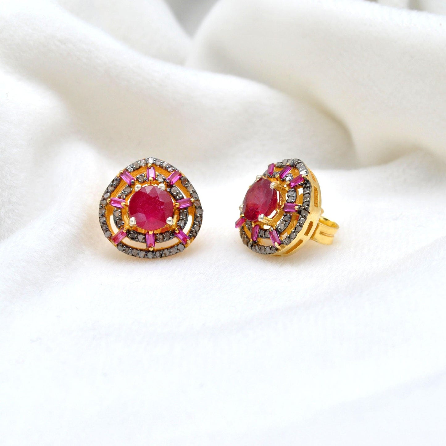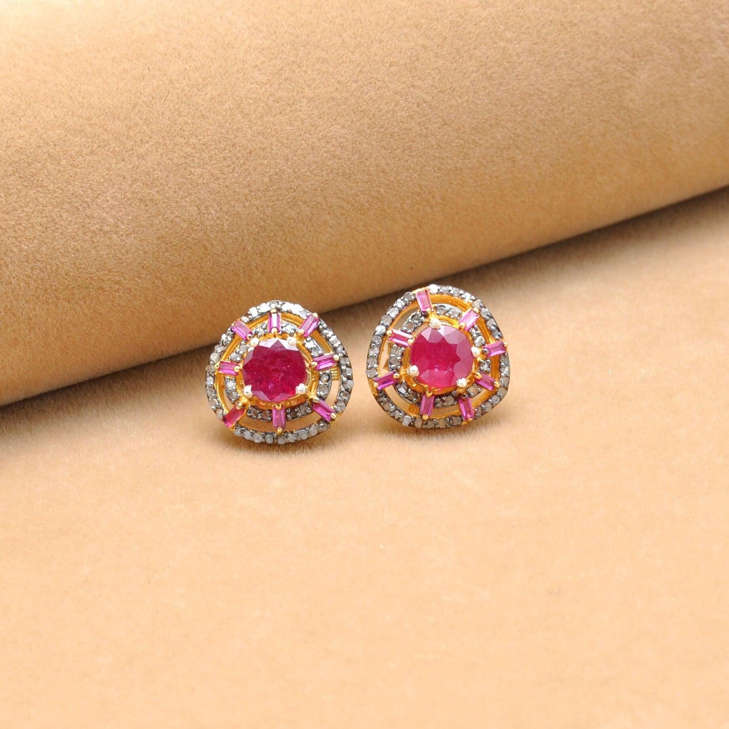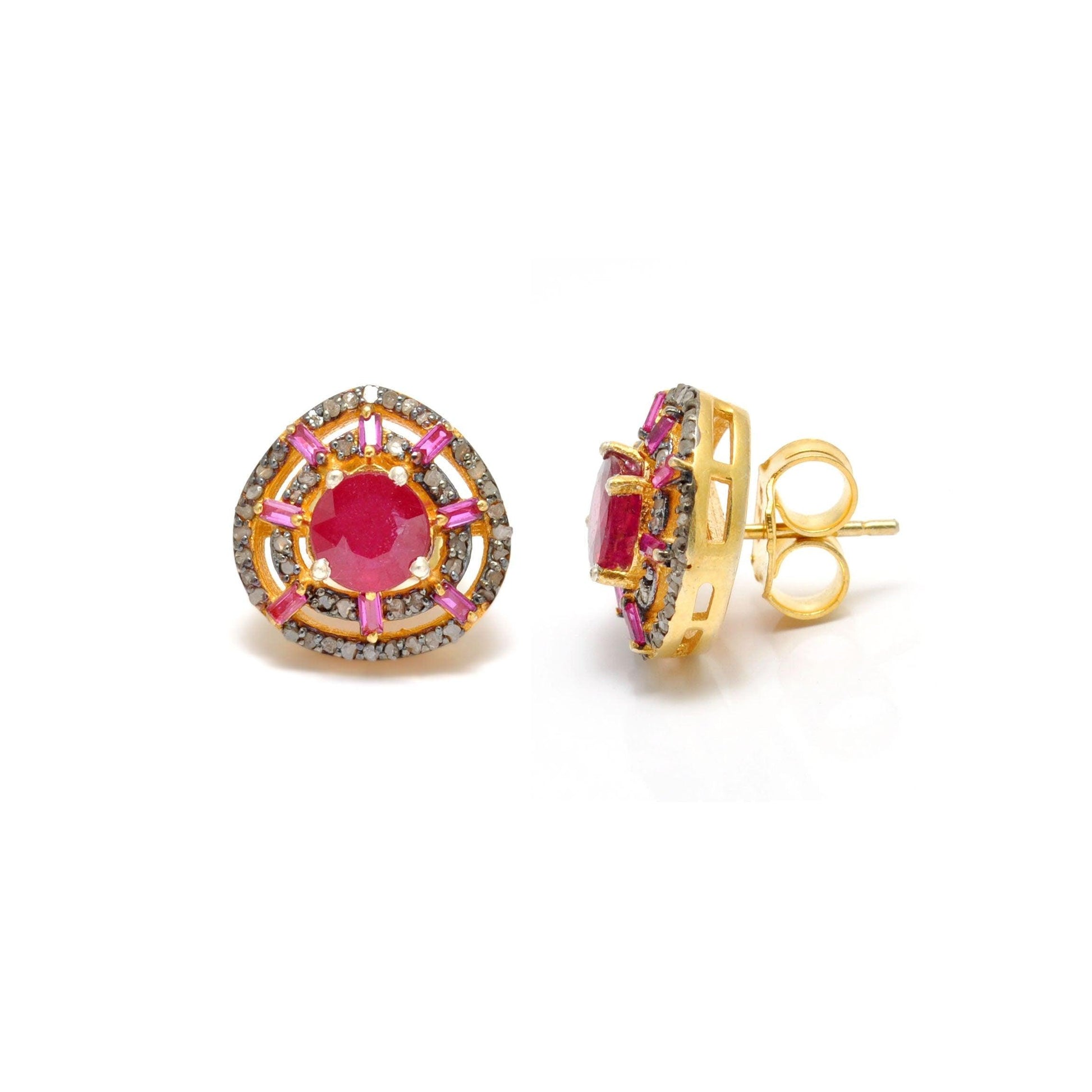 Enhance your style with our Ruby Diamond Stud Earring Jewelry. Featuring a stunning combination of rubies and diamonds, these earrings add elegance and sophistication to any outfit. Made with high-quality materials, these earrings are a timeless accessory that will elevate your look.