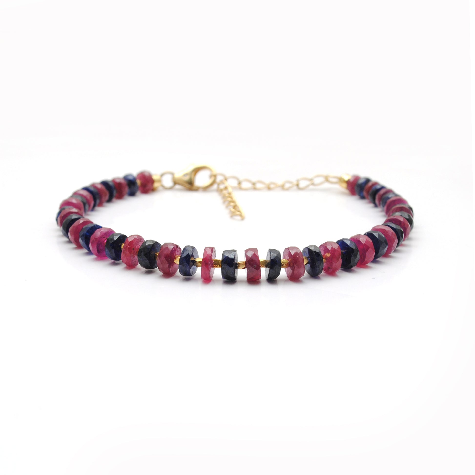 925 Sterling Silver Ruby & Multi-Sapphire Beaded Bracelet
