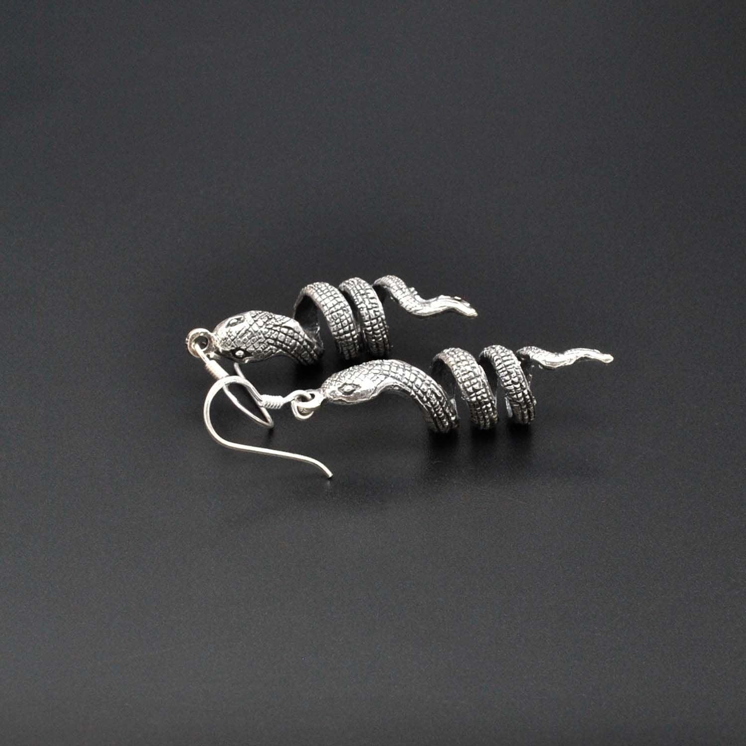 Elevate your style with our stunning Snake Silver Dangle Earrings. Made with high-quality silver, these earrings feature intricately detailed snake designs that will add a touch of edgy elegance to any outfit. Perfect for day or night, these earrings are a must-have for any fashion-forward individual.