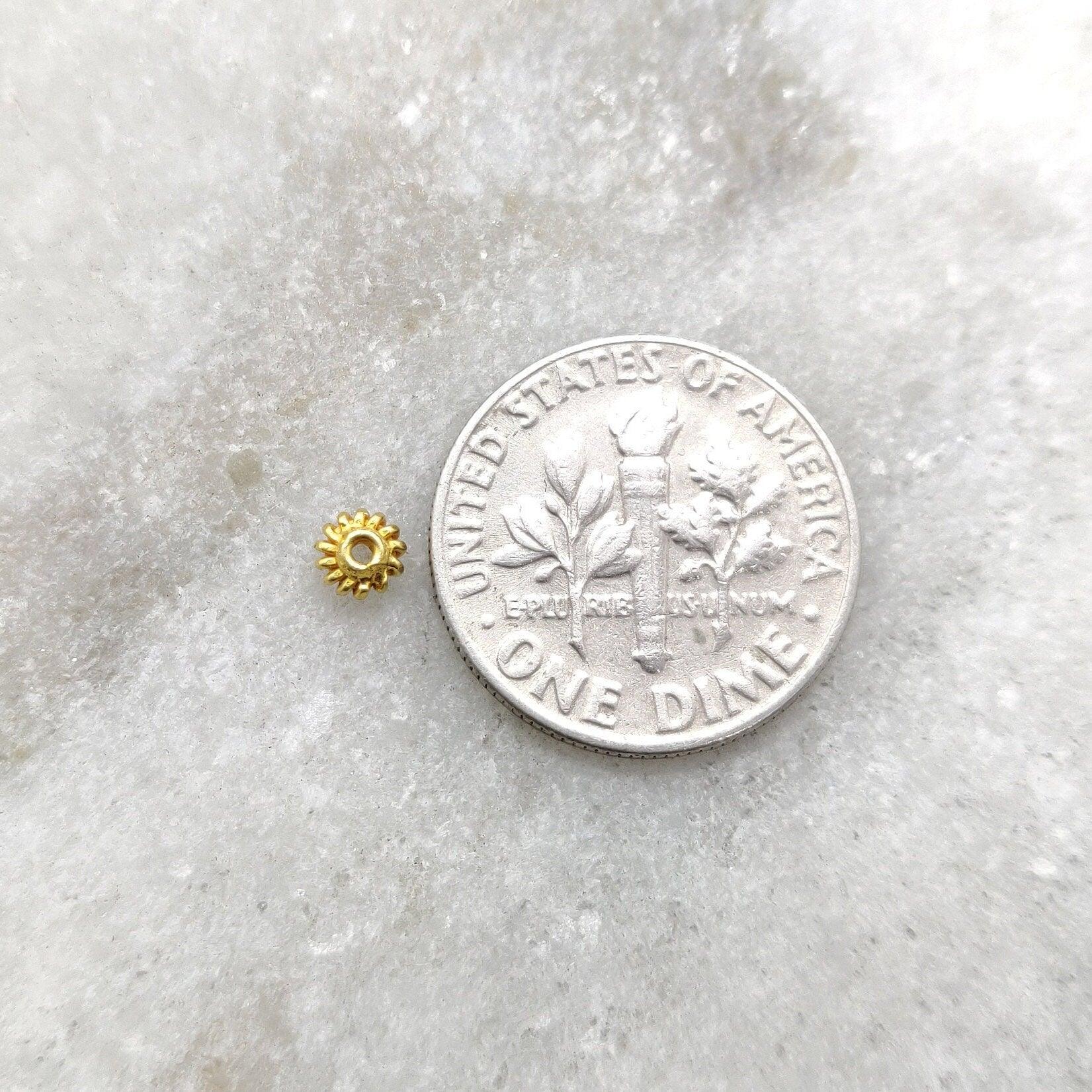 Expertly crafted in 18k gold, these spacer beads are a must-have for any DIY jewelry project. With their intricate design, they effortlessly add a touch of elegance and sophistication to any piece. Elevate your jewelry game with these high-quality, versatile spacers.
