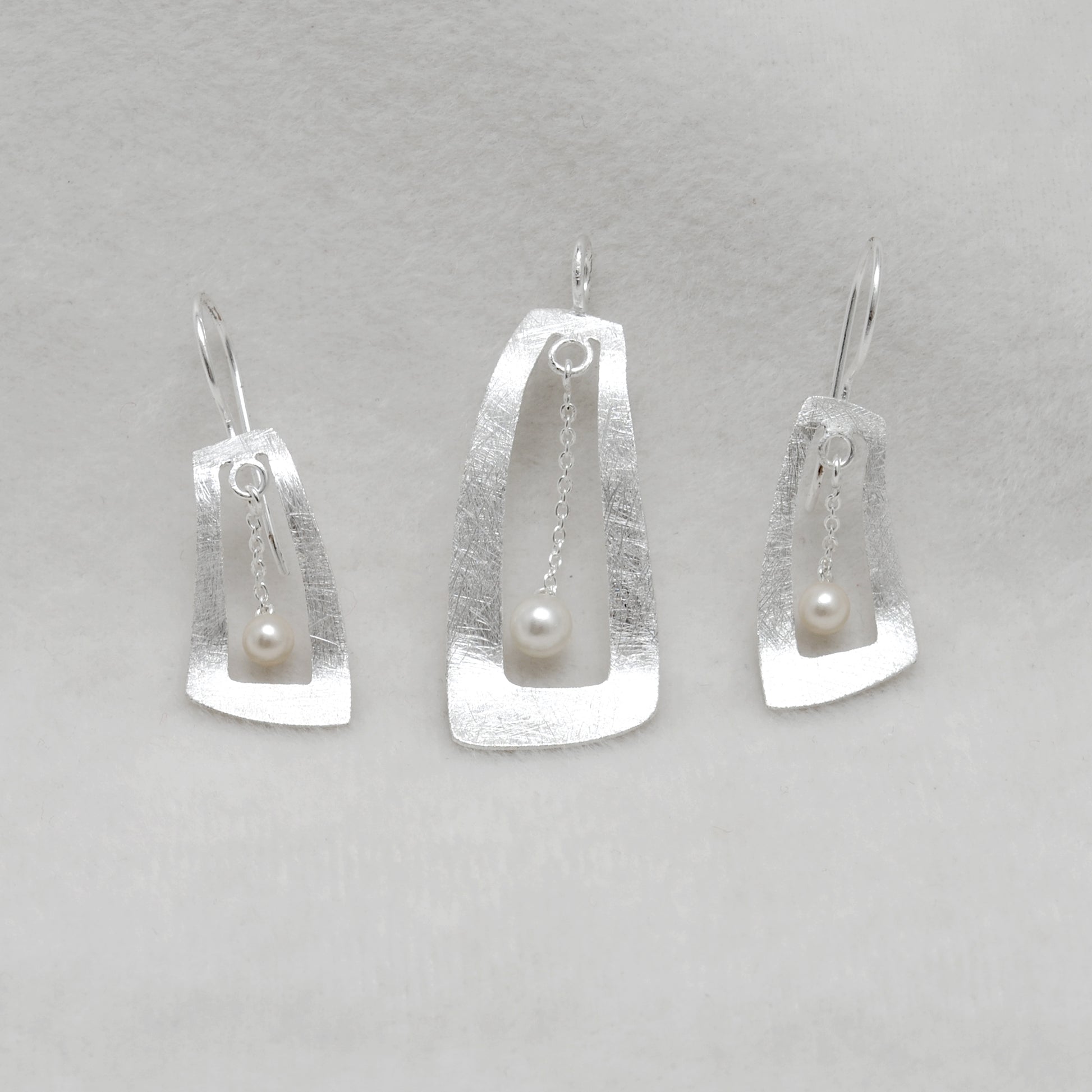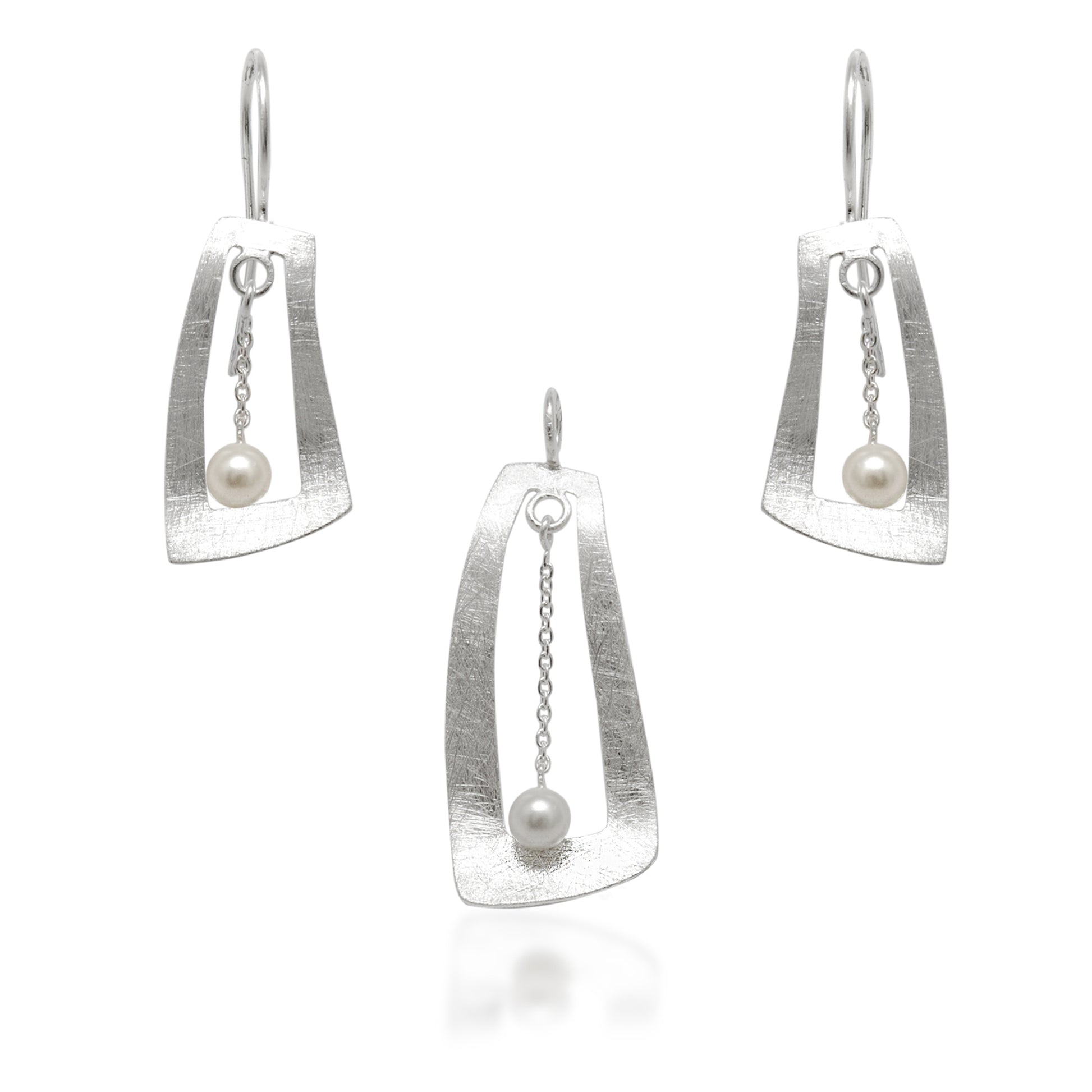 925 Sterling Silver Pearl Pendant & Earrings Set