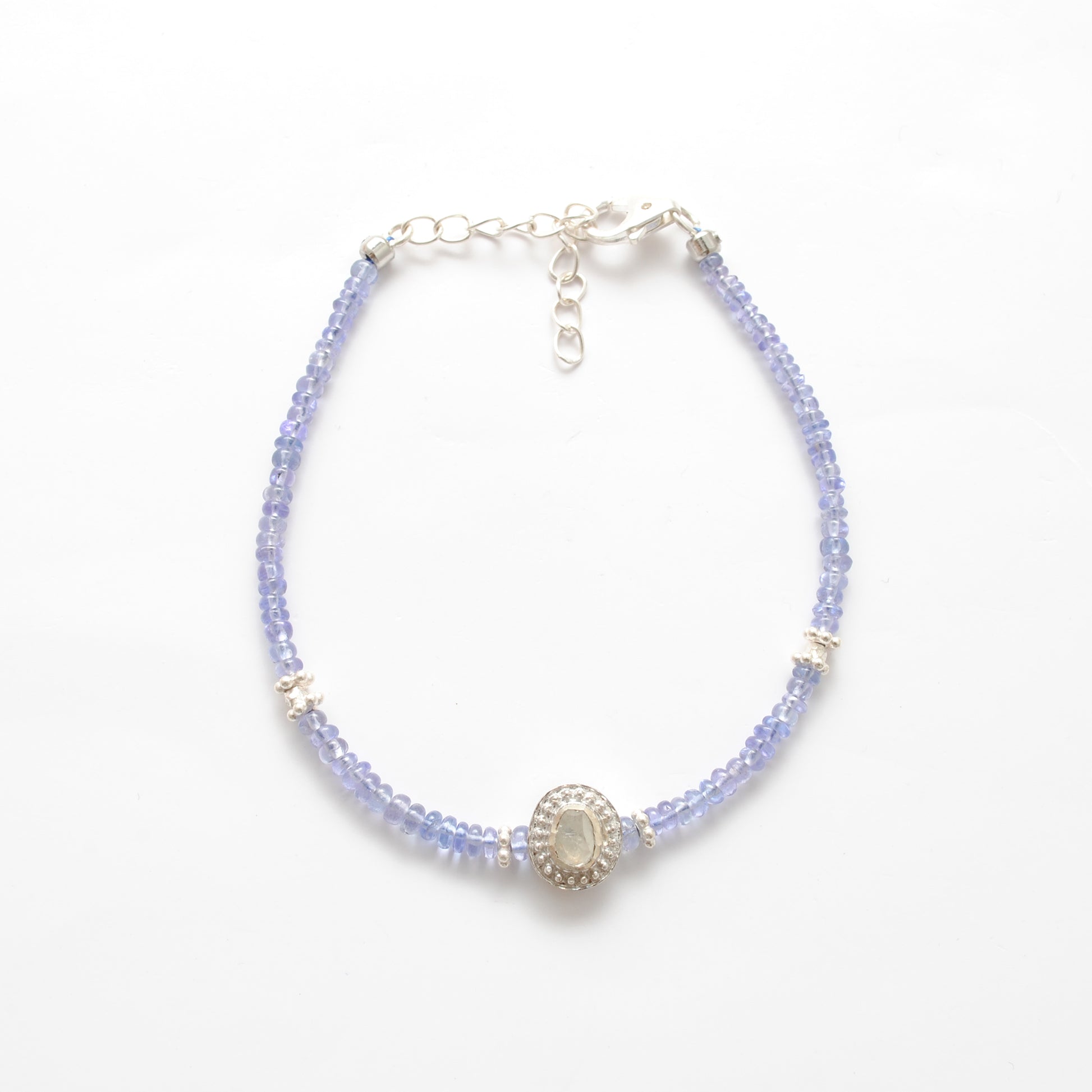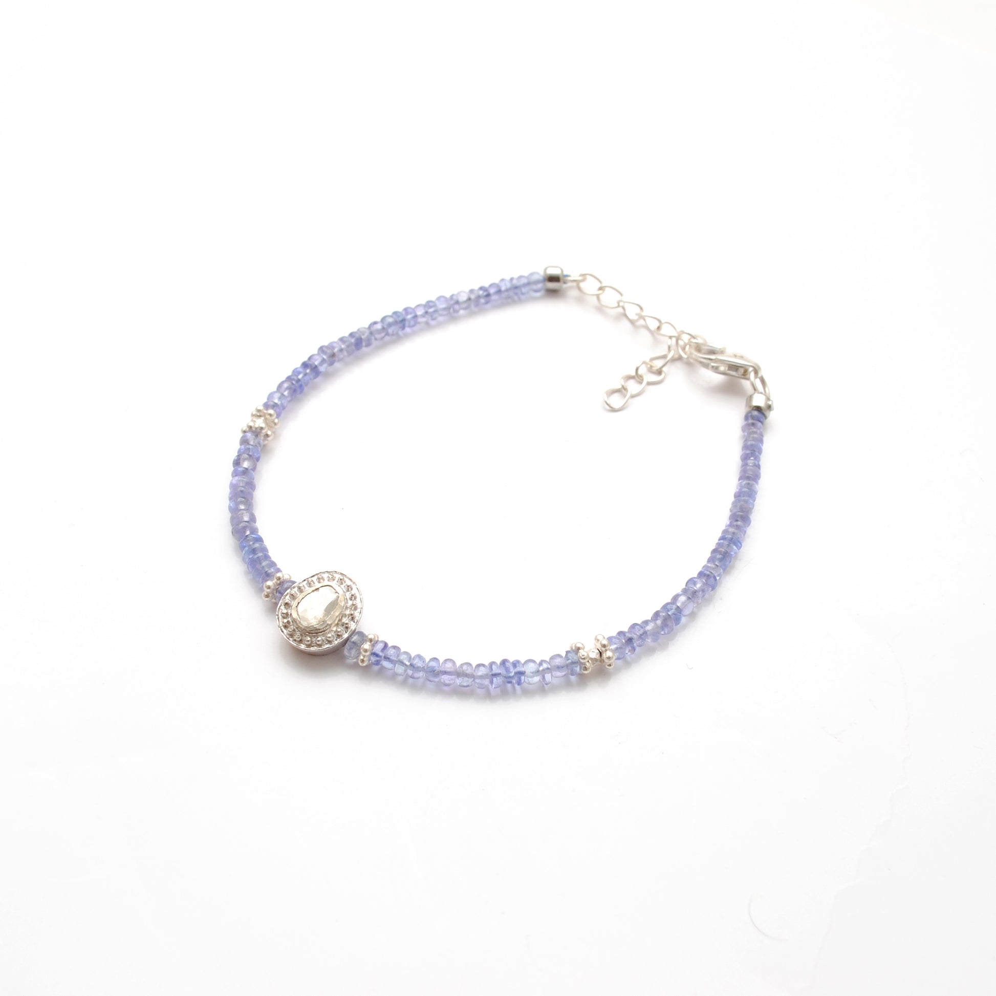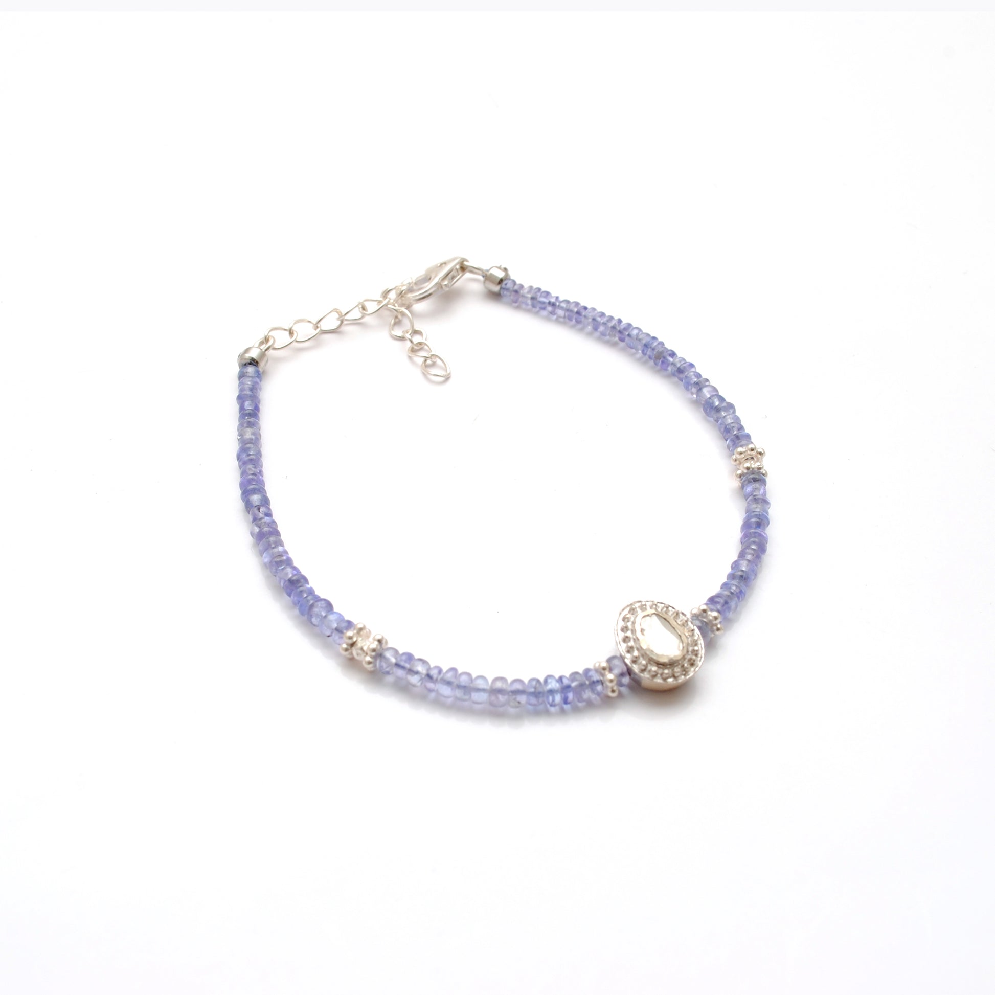 925 Sterling Silver Tanzanite & Diamond Beaded Bracelet