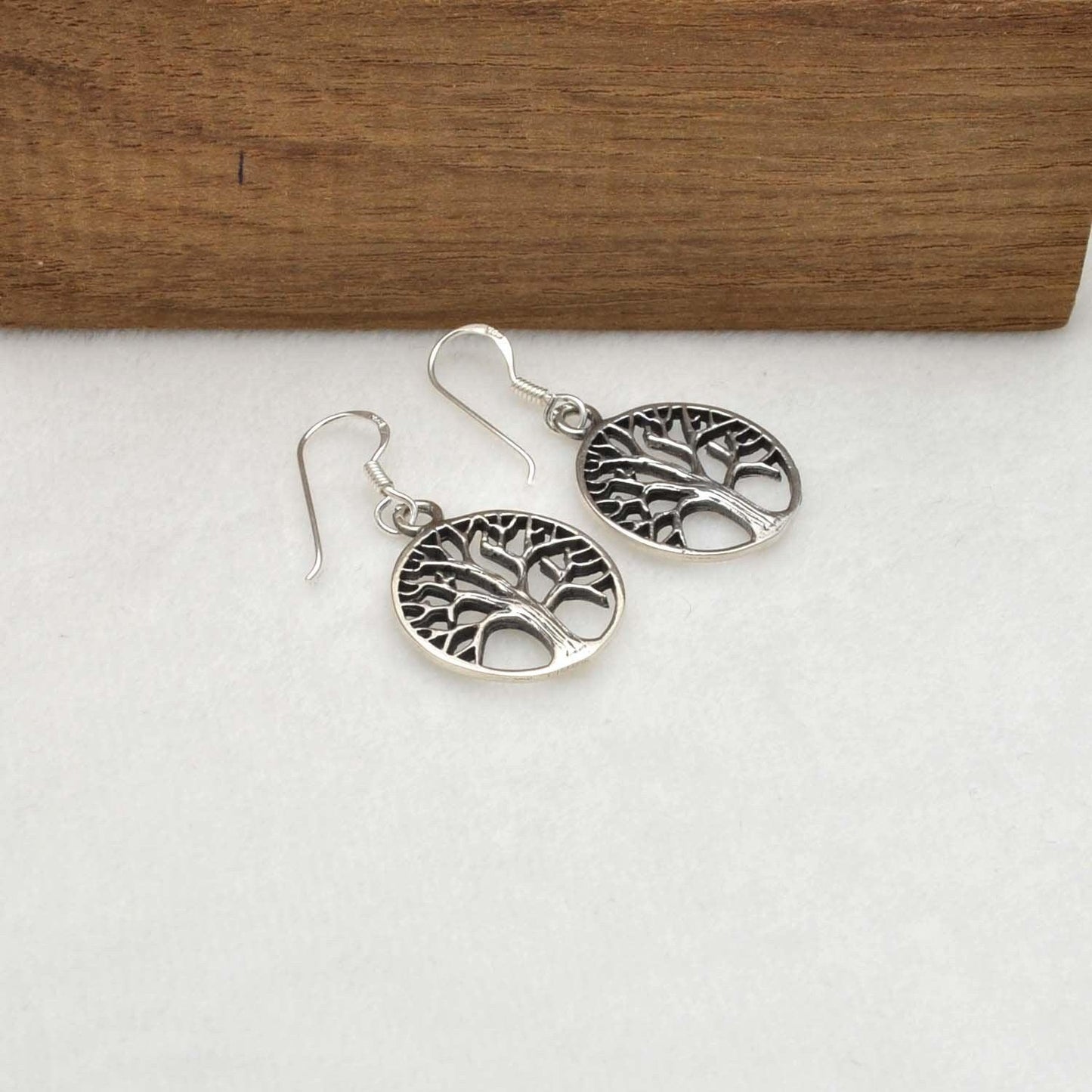 These elegant Tree of Life silver dangle earrings are expertly crafted with a stunning design that is sure to impress. Made from high-quality materials, these earrings will add a touch of sophistication to any outfit. Perfect for any occasion, they make a beautiful and meaningful addition to any jewelry collection.