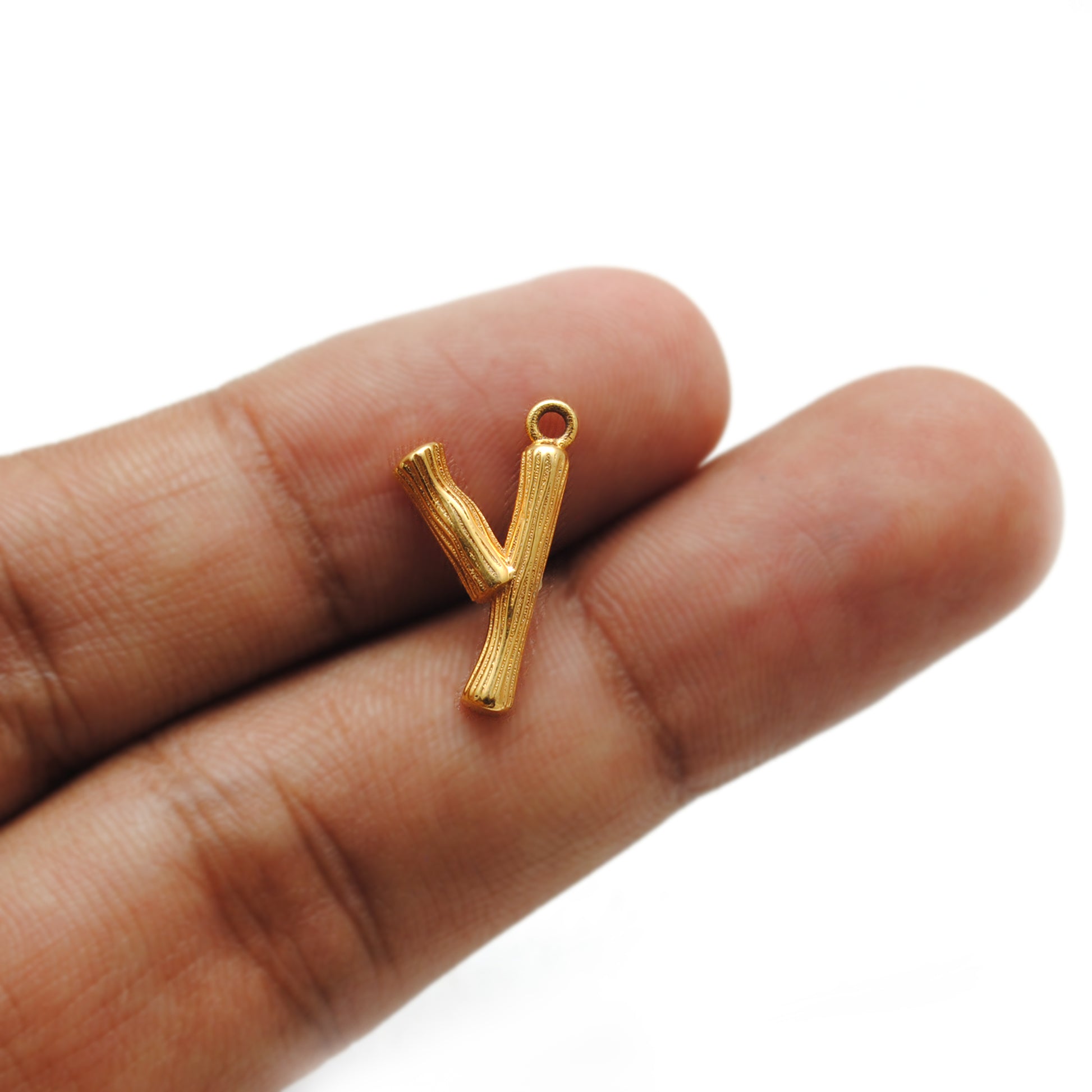 18K Solid Yellow Gold Pendant Y Initial Letter Charm